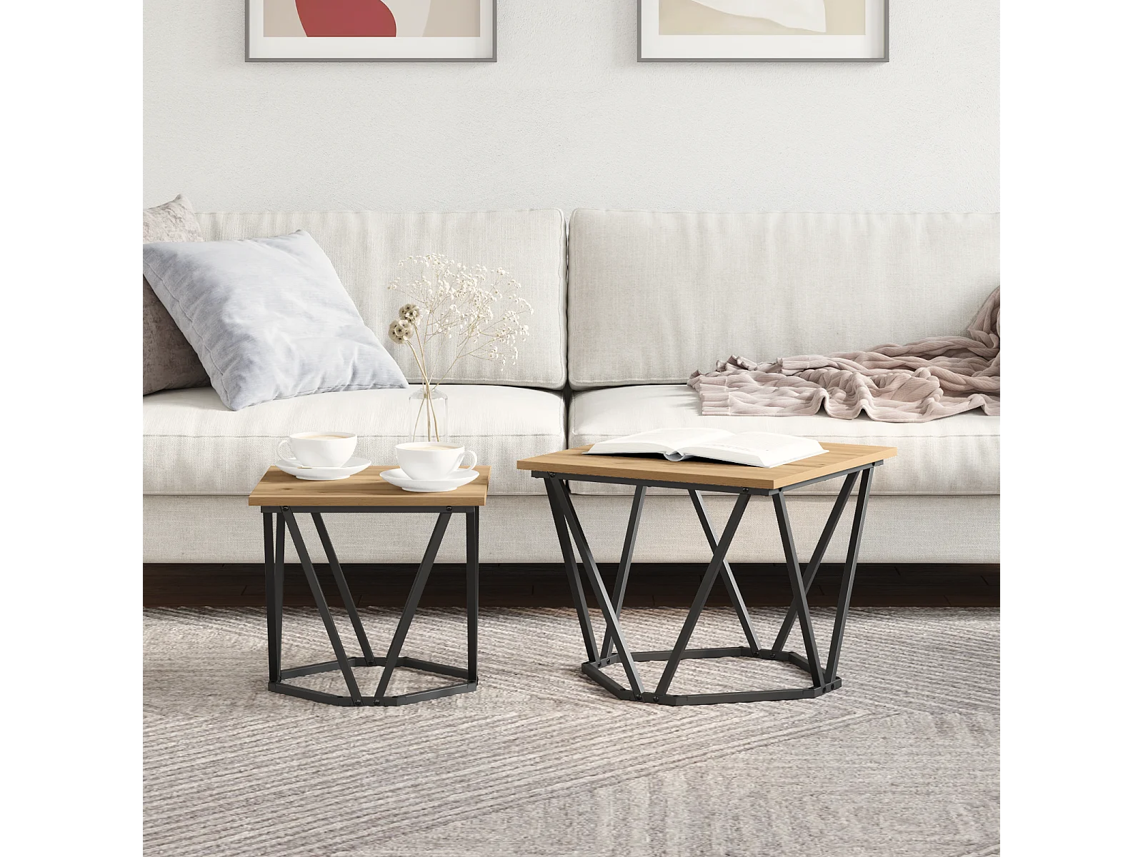 Ensemble de 2 tables d'appoint en chêne fumé en bois stratifié
