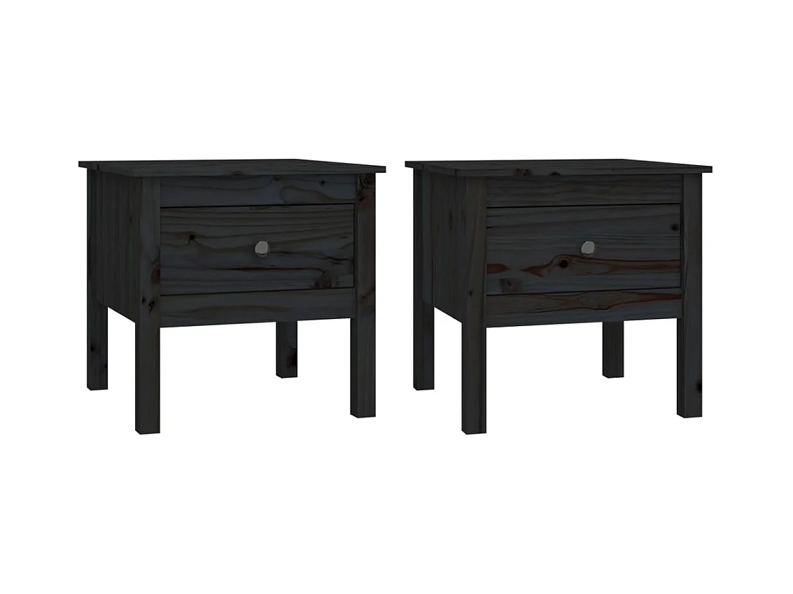Tables d'appoint 2 pcs Noir 50x50x49 cm Bois massif de pin