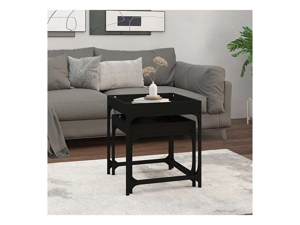 Tables d'appoint 2 pièces Noir Bois d'ingénierie