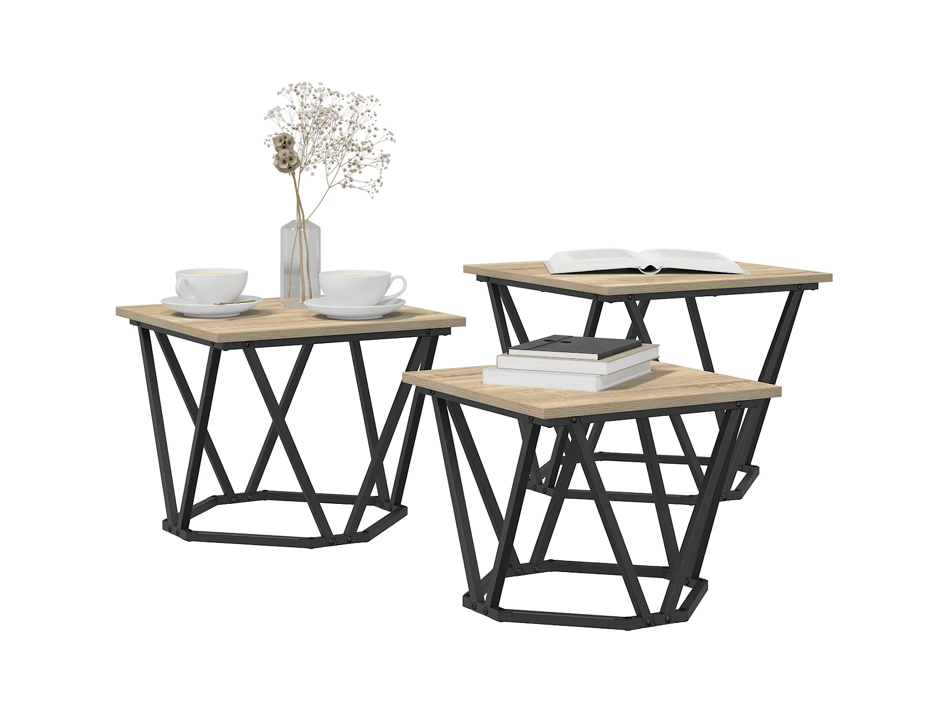 Tables d'appoint 3 pcs en bois d'ingénierie chêne Sonoma