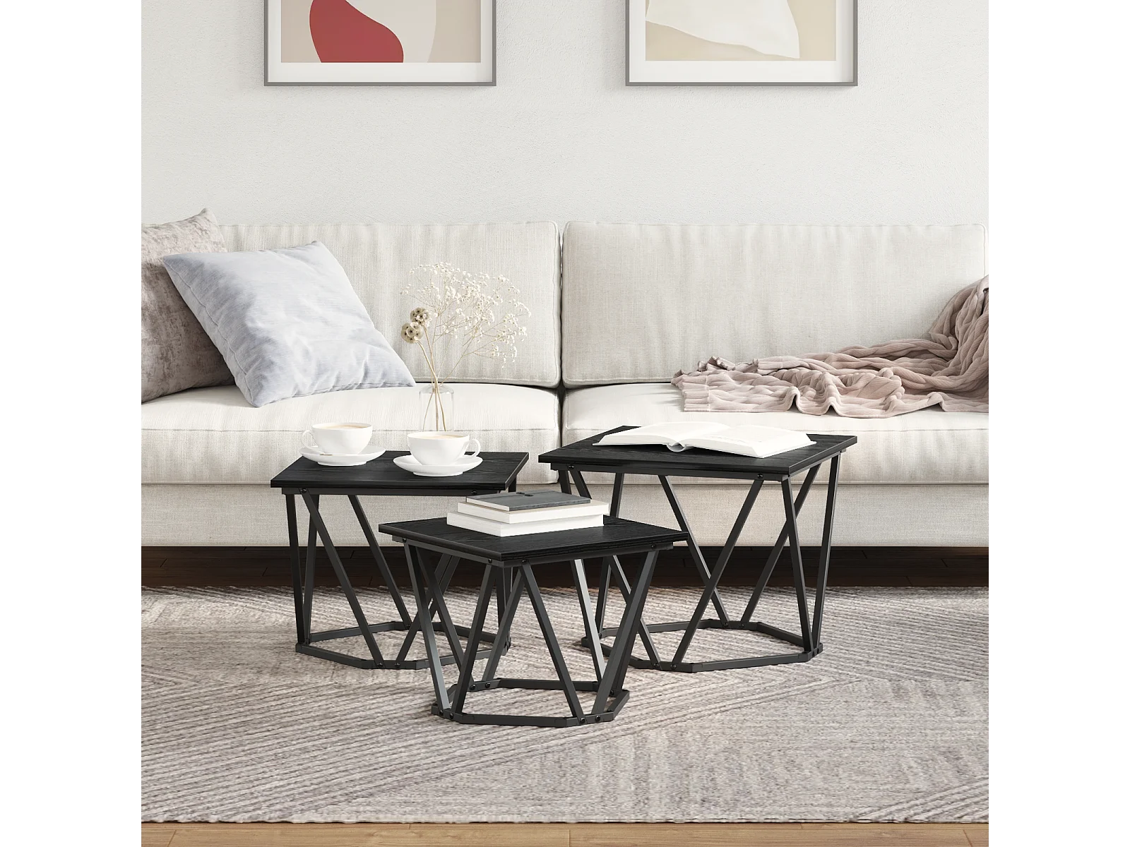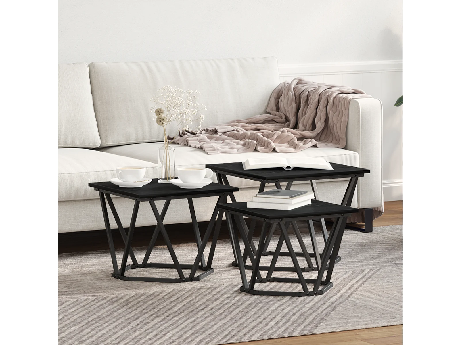 Tables d'appoint 3 pcs Noir Chêne en bois d'ingénierie