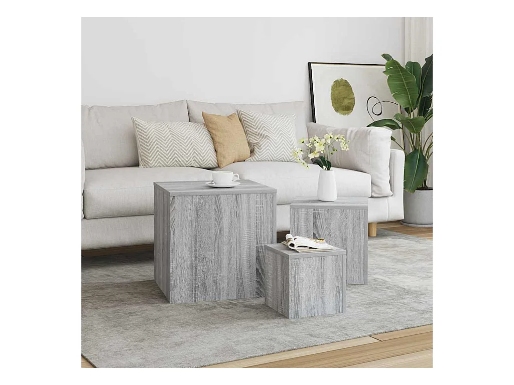 Tables d’appoint gigognes 3 pcs sonoma gris bois d'ingénierie