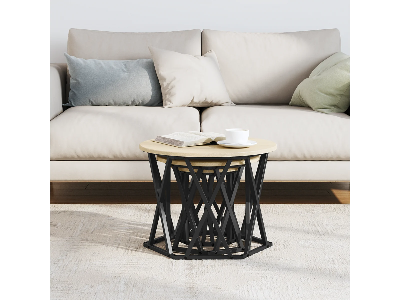 Tables d'appoint empilables 3 pcs Chêne Sonoma en bois aggloméré