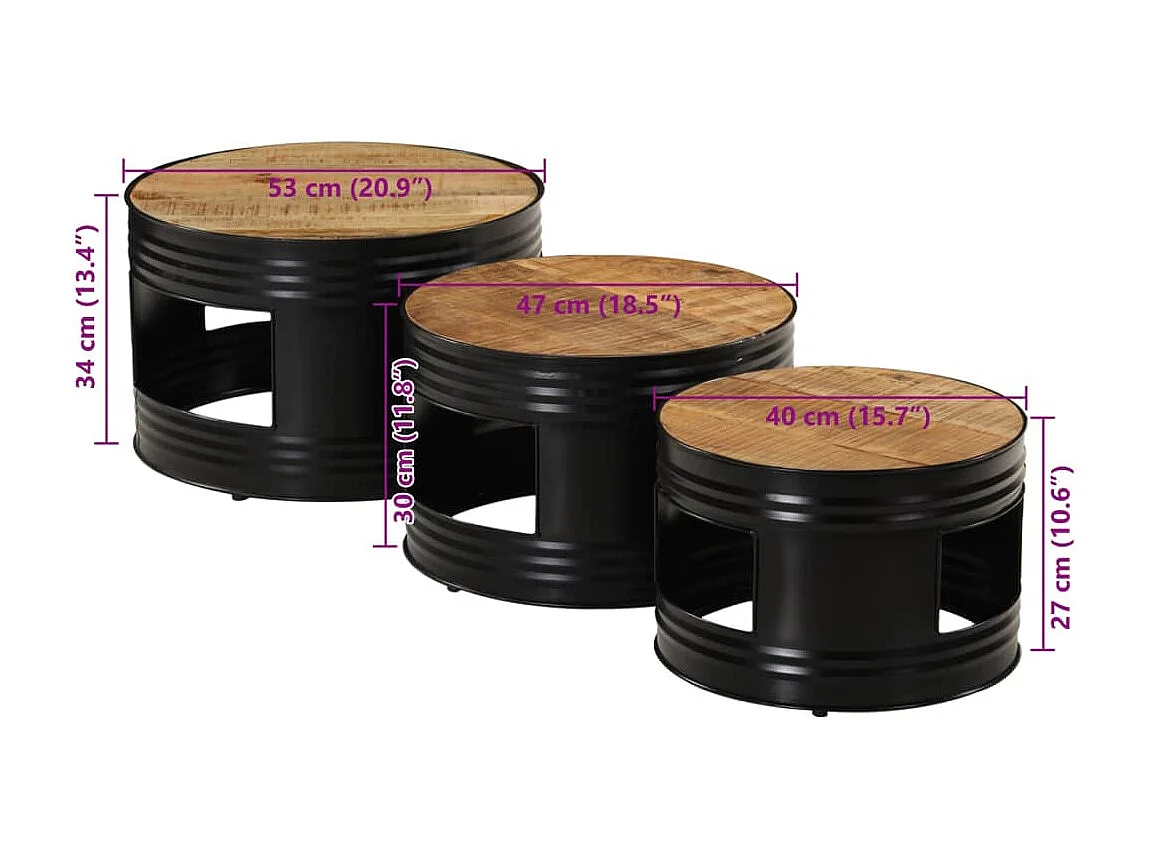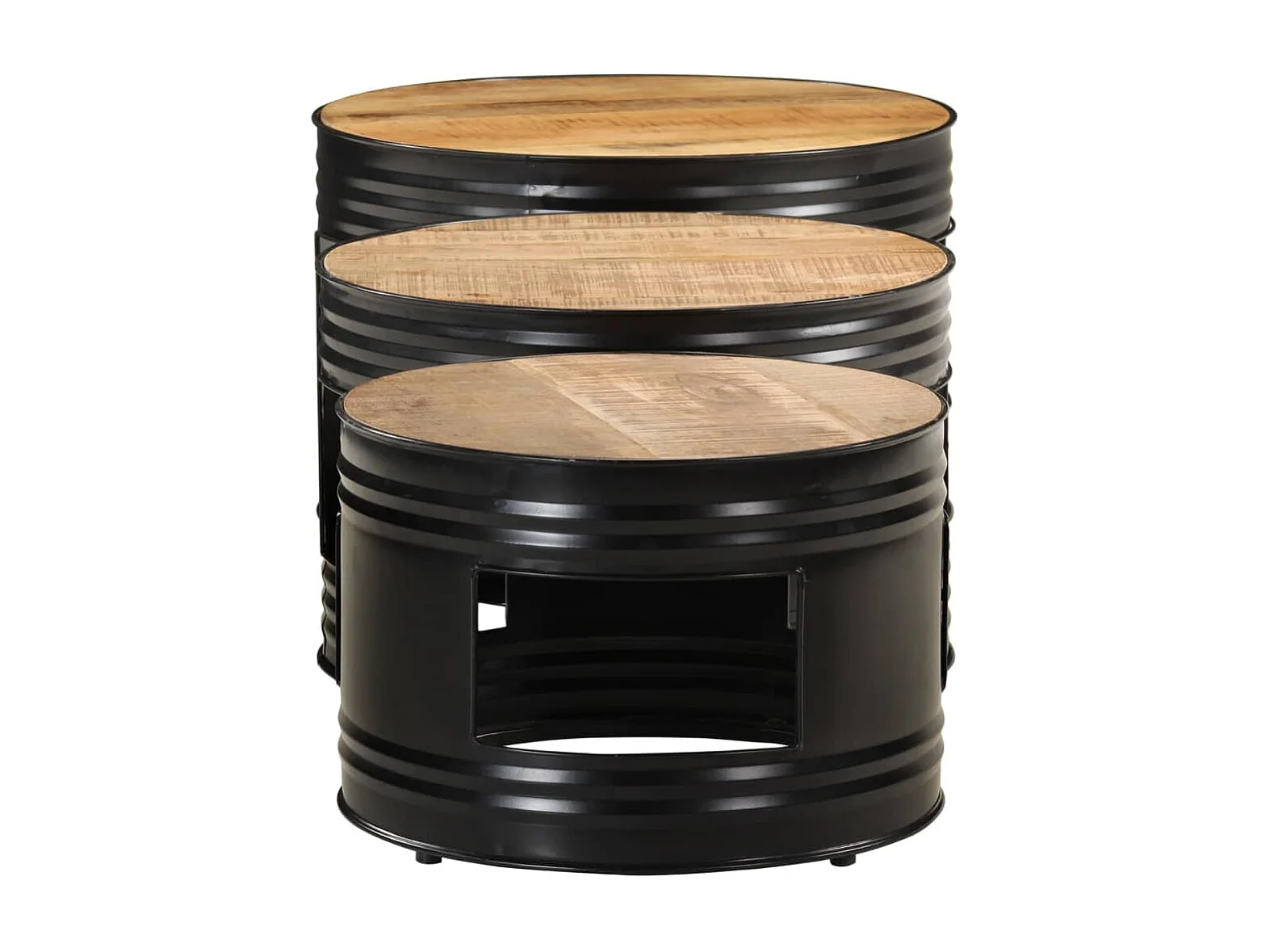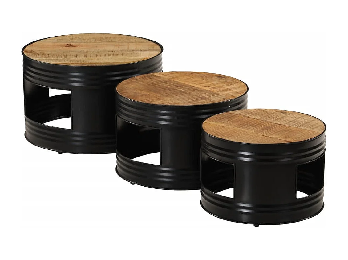 Tables de bar forme tambour 3 pcs bois de manguier massif brut