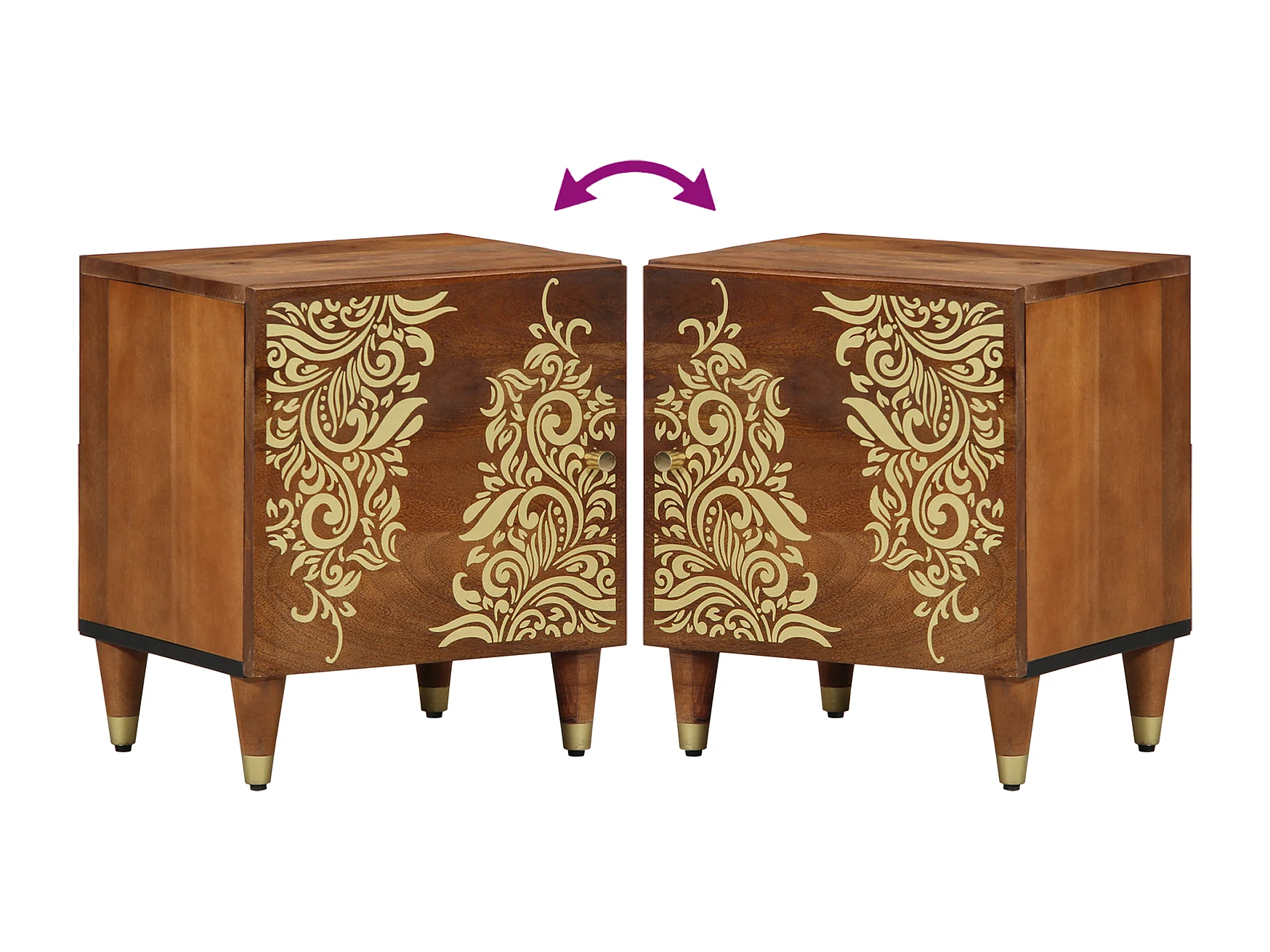 Armoires de chevet - 2 pièces en bois de mangue massif, dimensions : 40x33.5x46 cm.