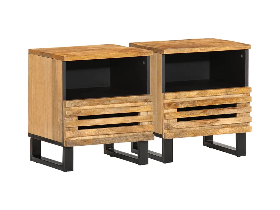 Tables de chevet 2 pcs 40x34x46 cm bois massif de manguier brut