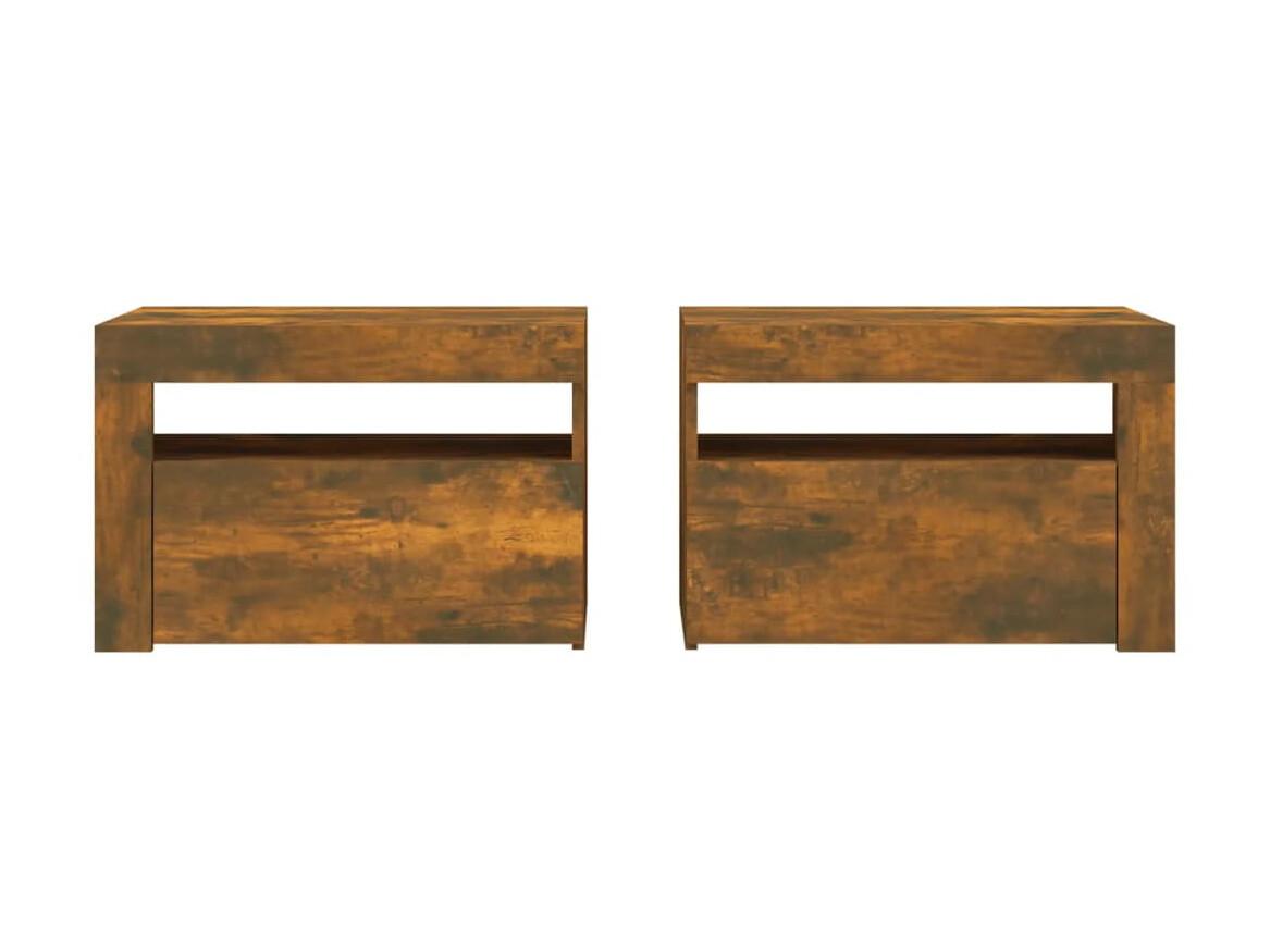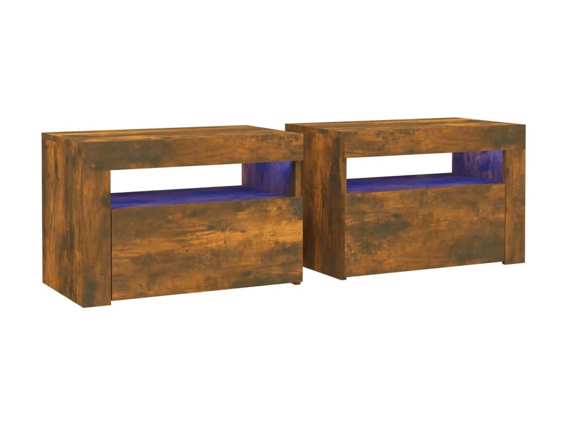Lot de 2 Tables de chevet avec LED chêne fumé 60x35x40 cm GHR36088
