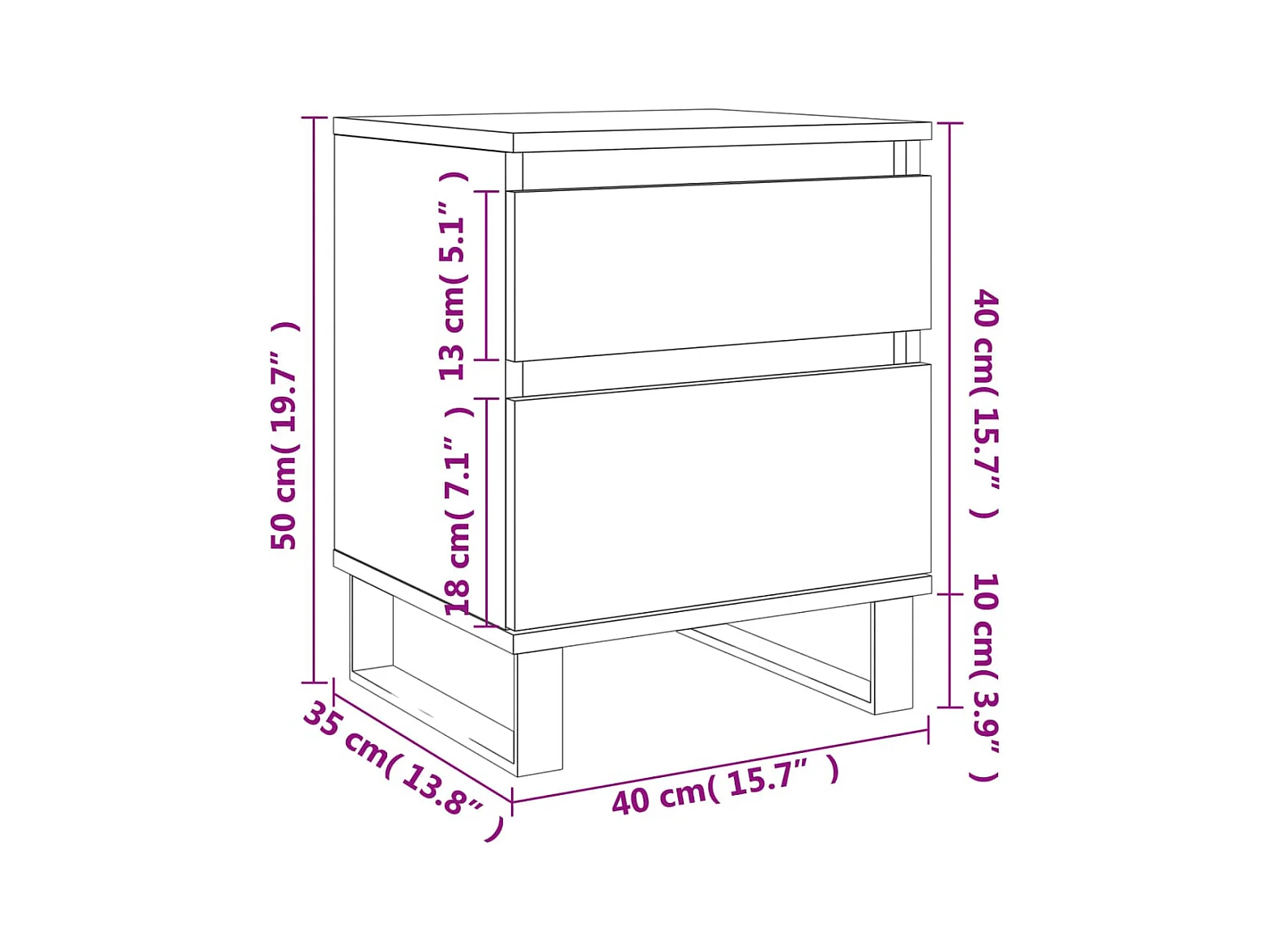 Table de chevet Blanc 40x35x50 cm Bois d’ingénierie
