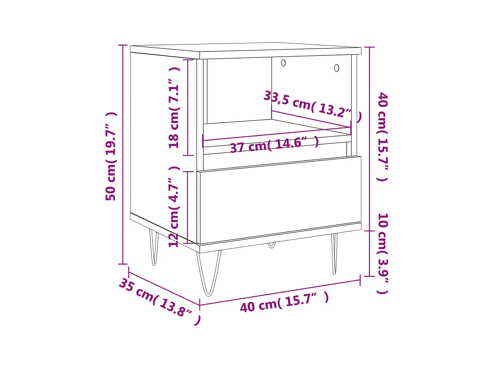 Table de chevet Blanc 40x35x50 cm Bois d’ingénierie
