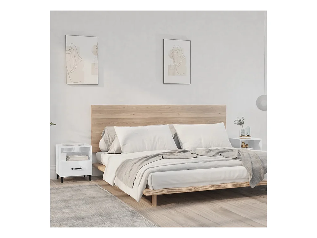 Lot de 2 Tables de chevet Blanc brillant Bois d'ingénierie GHR35897