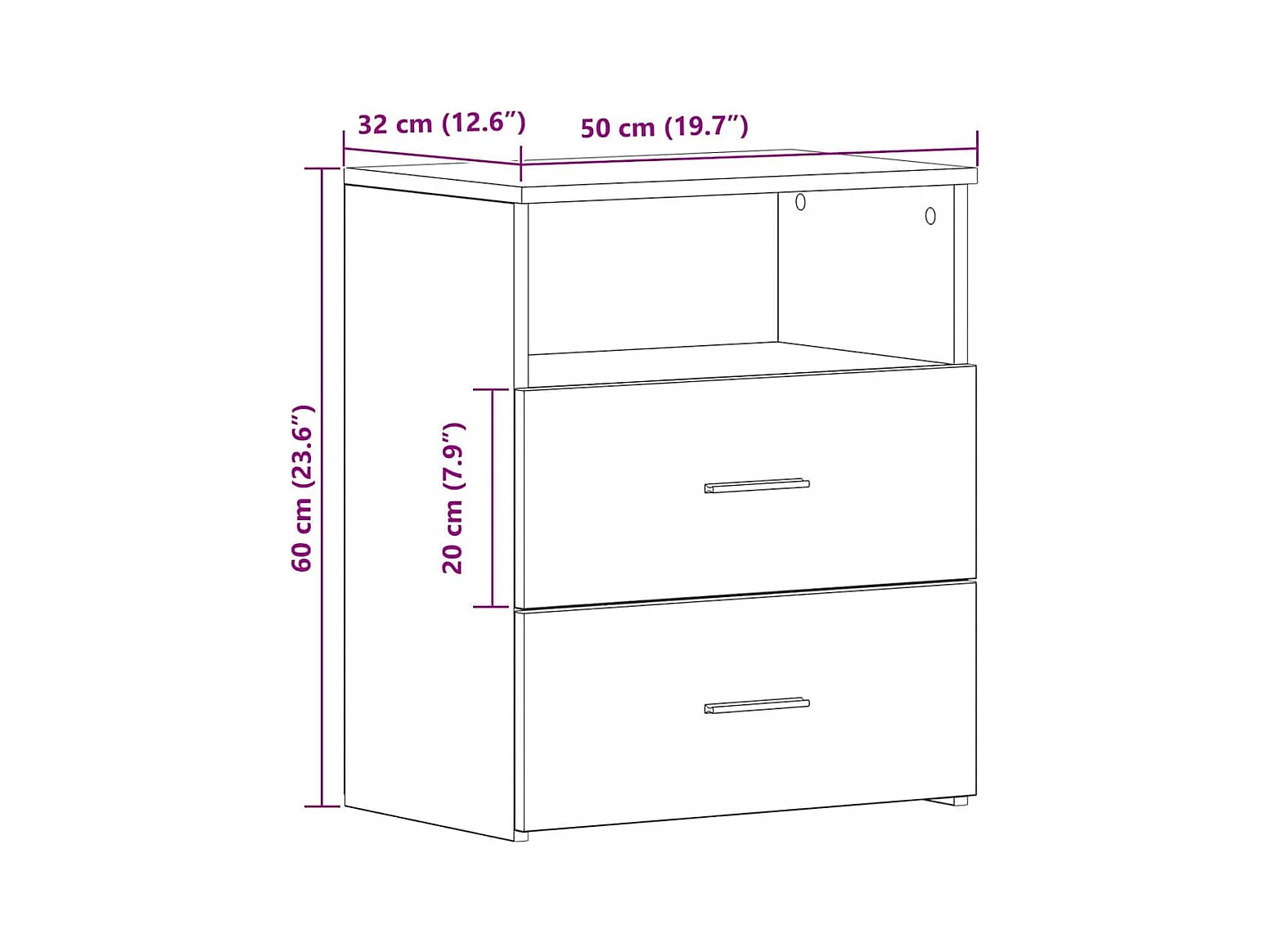 Table de chevet avec 2 tiroirs chêne fumé 36x36x68 cm