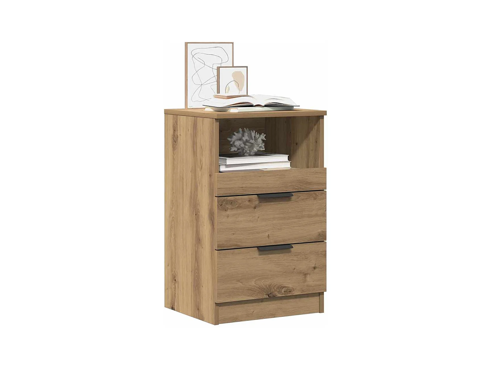 Table de chevet avec 3 tiroirs vieux bois 39x35x65 cm