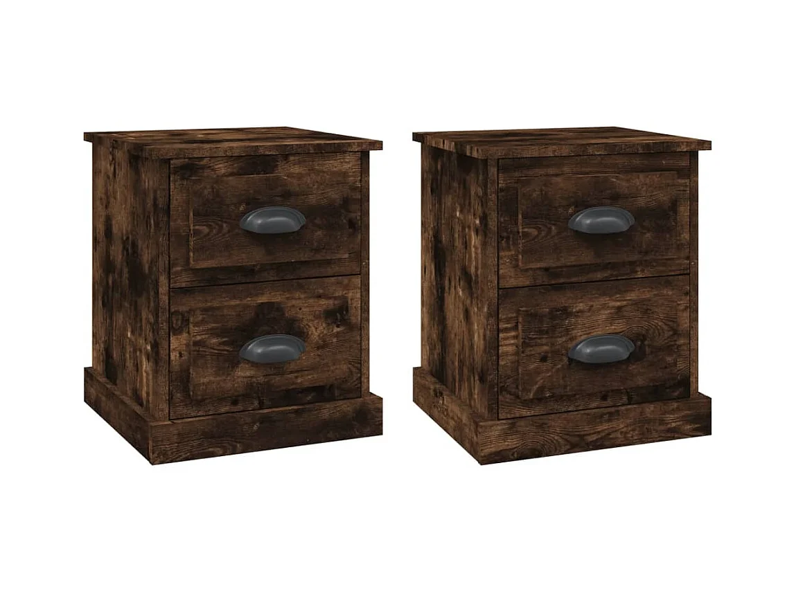 Lot de 2 Tables de chevet chêne fumé 39x39x47,5 cm bois ingénierie GHR22009