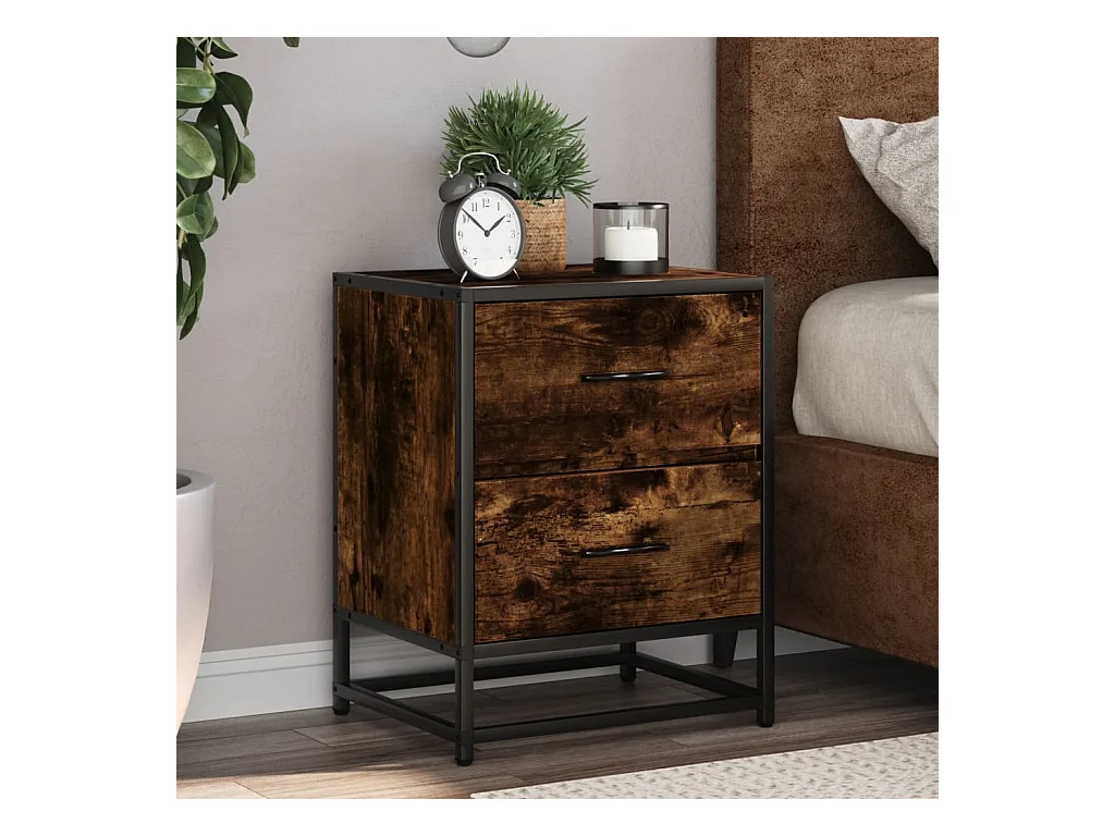 Tables de chevet 2 pièces chêne fumé bois d'ingénierie et métal