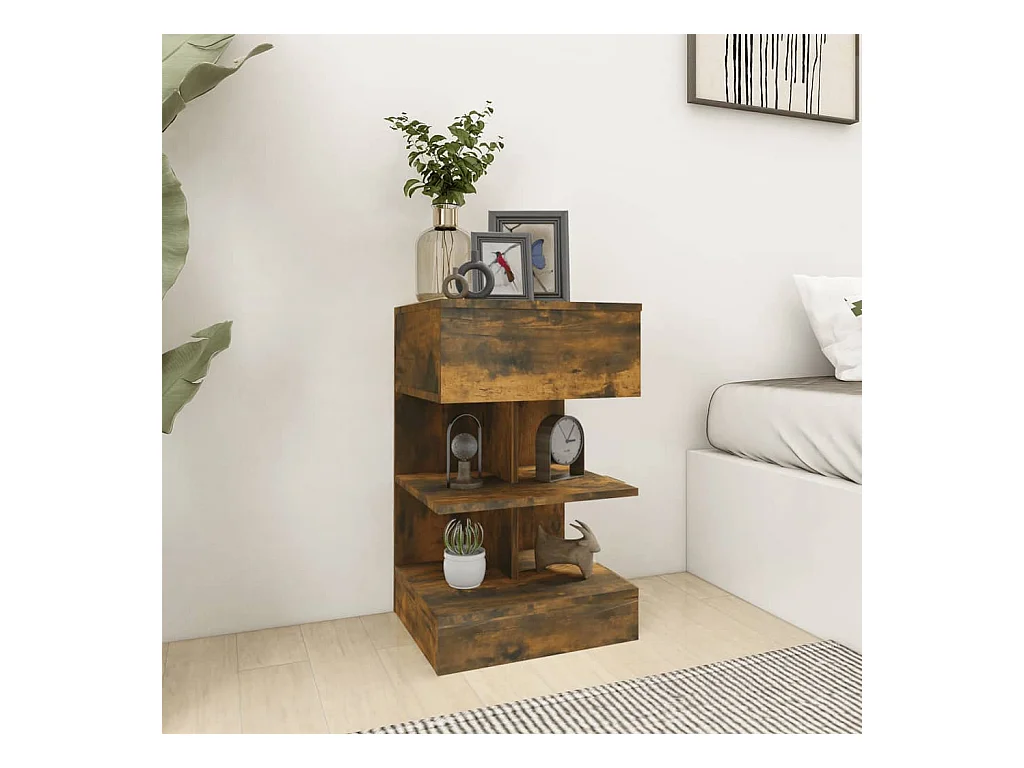 Table de chevet avec pieds en bois Chêne fumé 40x35x50 cm