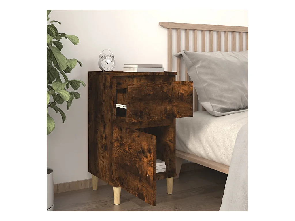 Table de chevet chêne fumé 40x35x70 cm bois d'ingénierie KEFWE36819