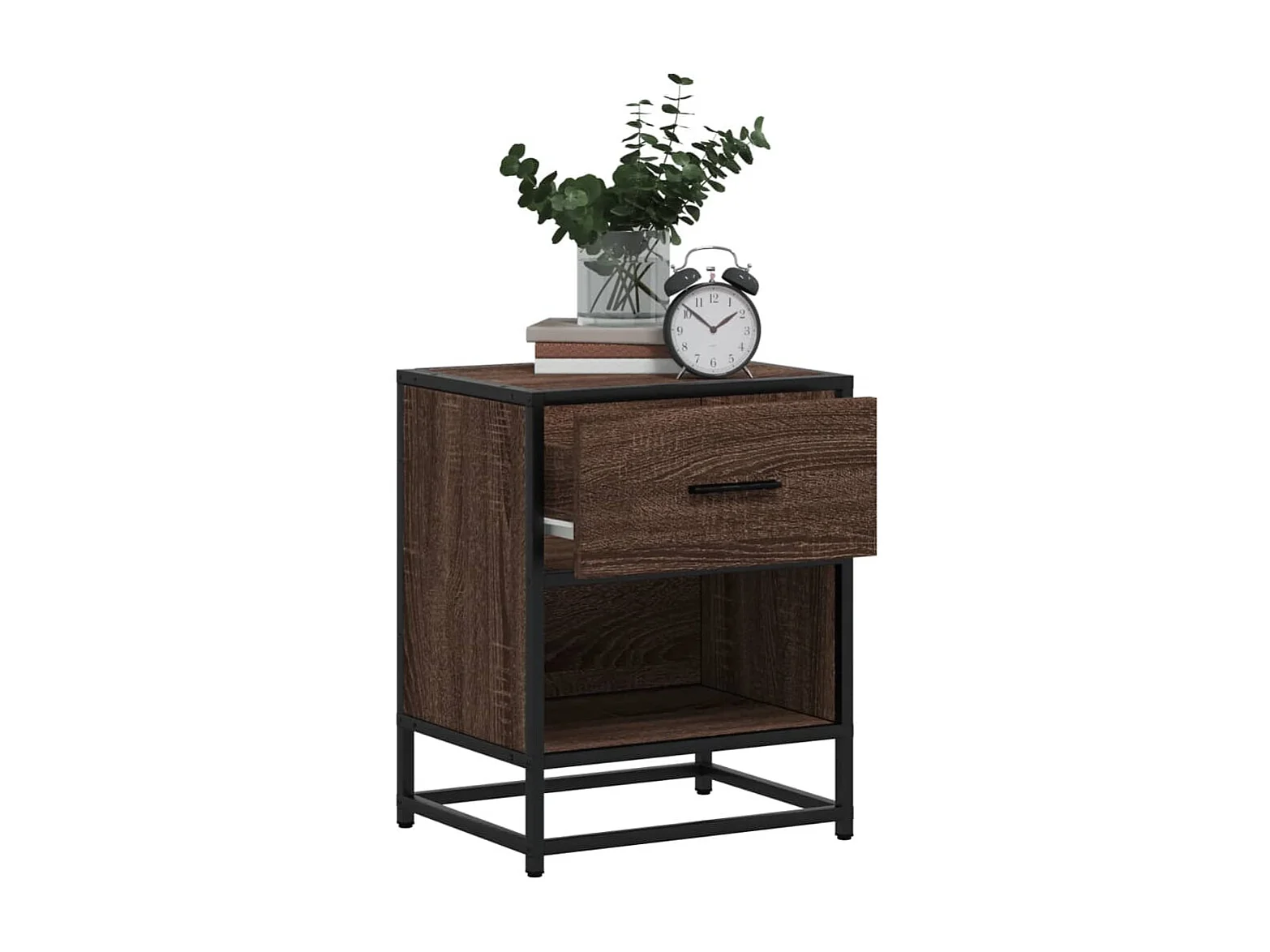 Table de chevet chêne marron 40x31x50cm bois d'ingénierie métal