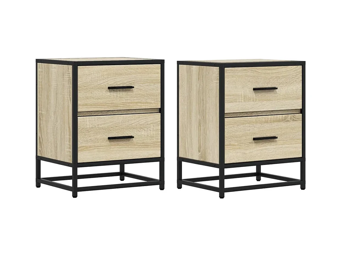 Tables de chevet 2 pcs chêne sonoma bois d'ingénierie et métal