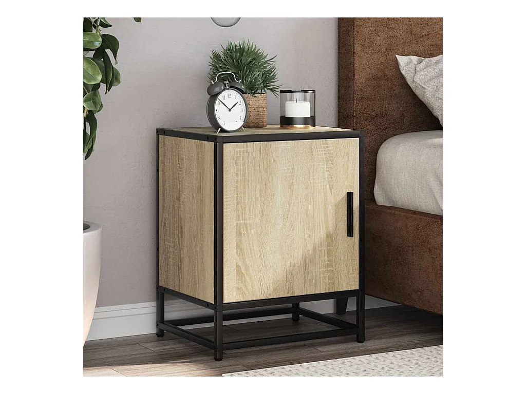 Table de chevet chêne sonoma 40x31x50cm bois d'ingénierie métal