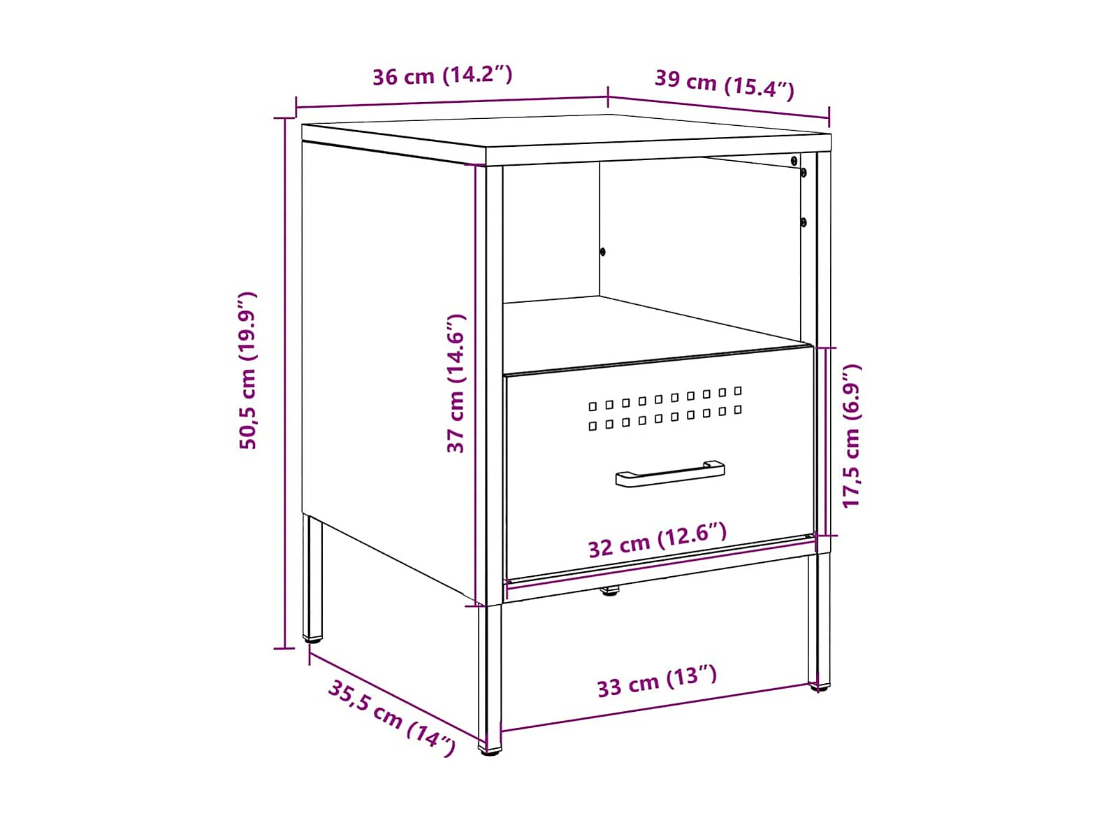 Table de chevet jaune moutarde 34,5x39x62 cm acier