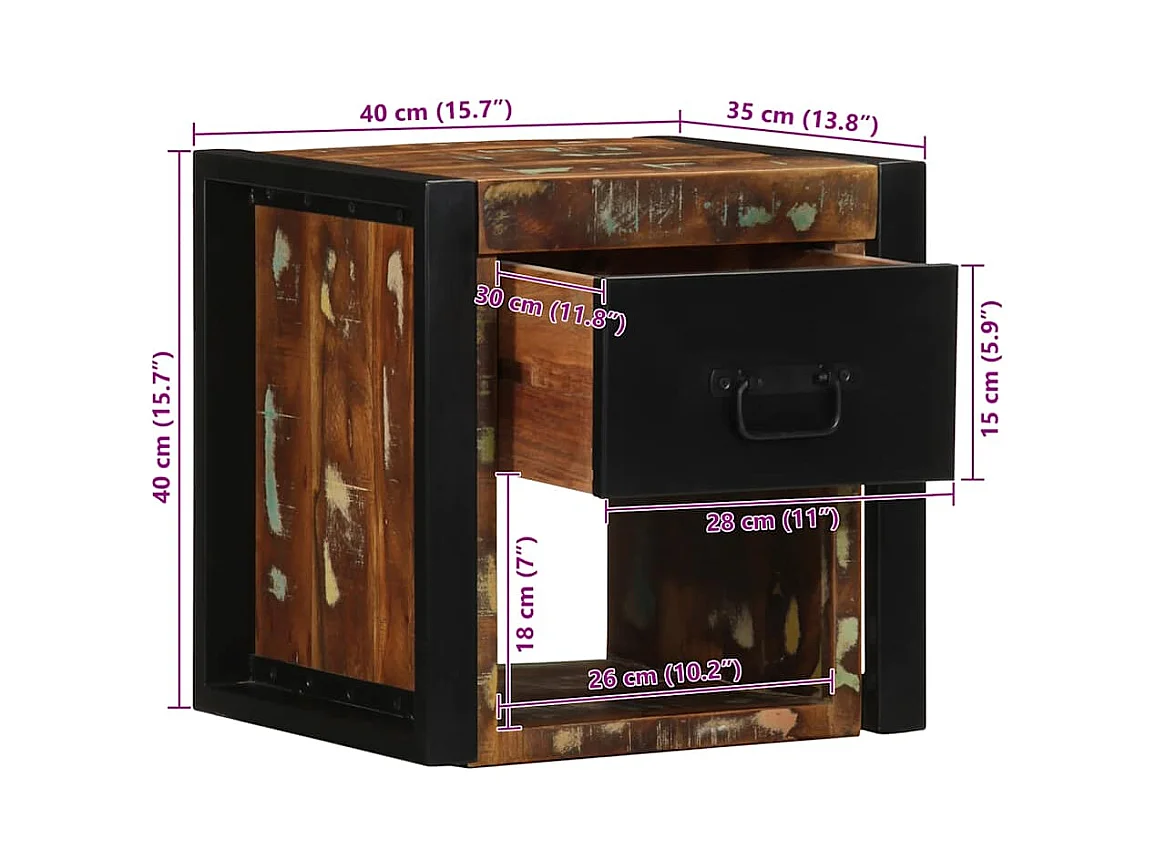 Table de chevet multicolore 60x32x80 cm bois de récupération