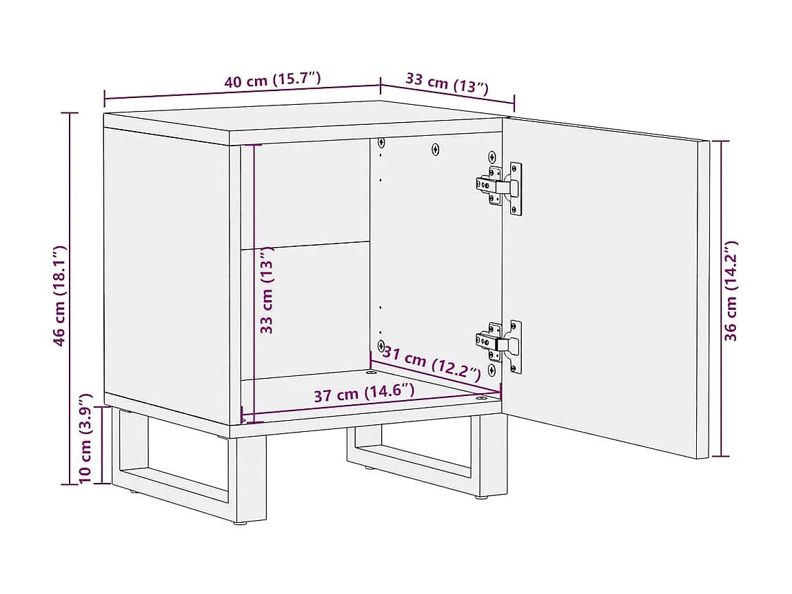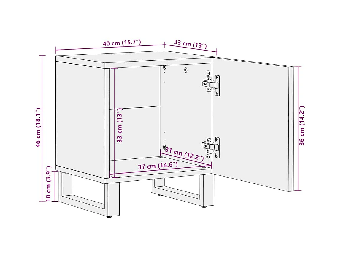 Table de chevet noir 40x33x46 cm bois de manguier solide