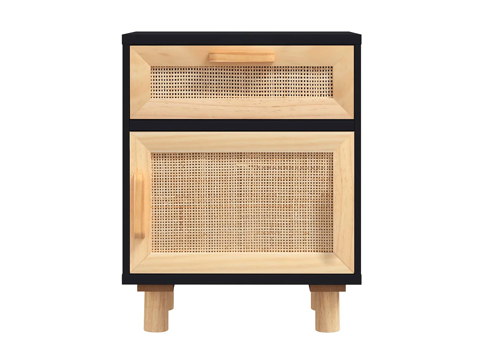 Lot de 2 Tables de chevet Noir Bois de pin massif et rotin naturel GHR22989