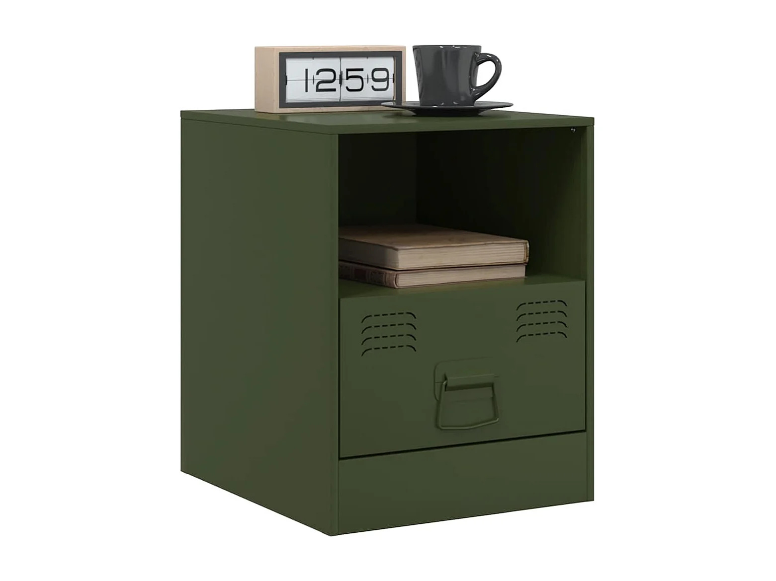 Tables de chevet 2 pcs vert olive 34,5x39x44 cm acier