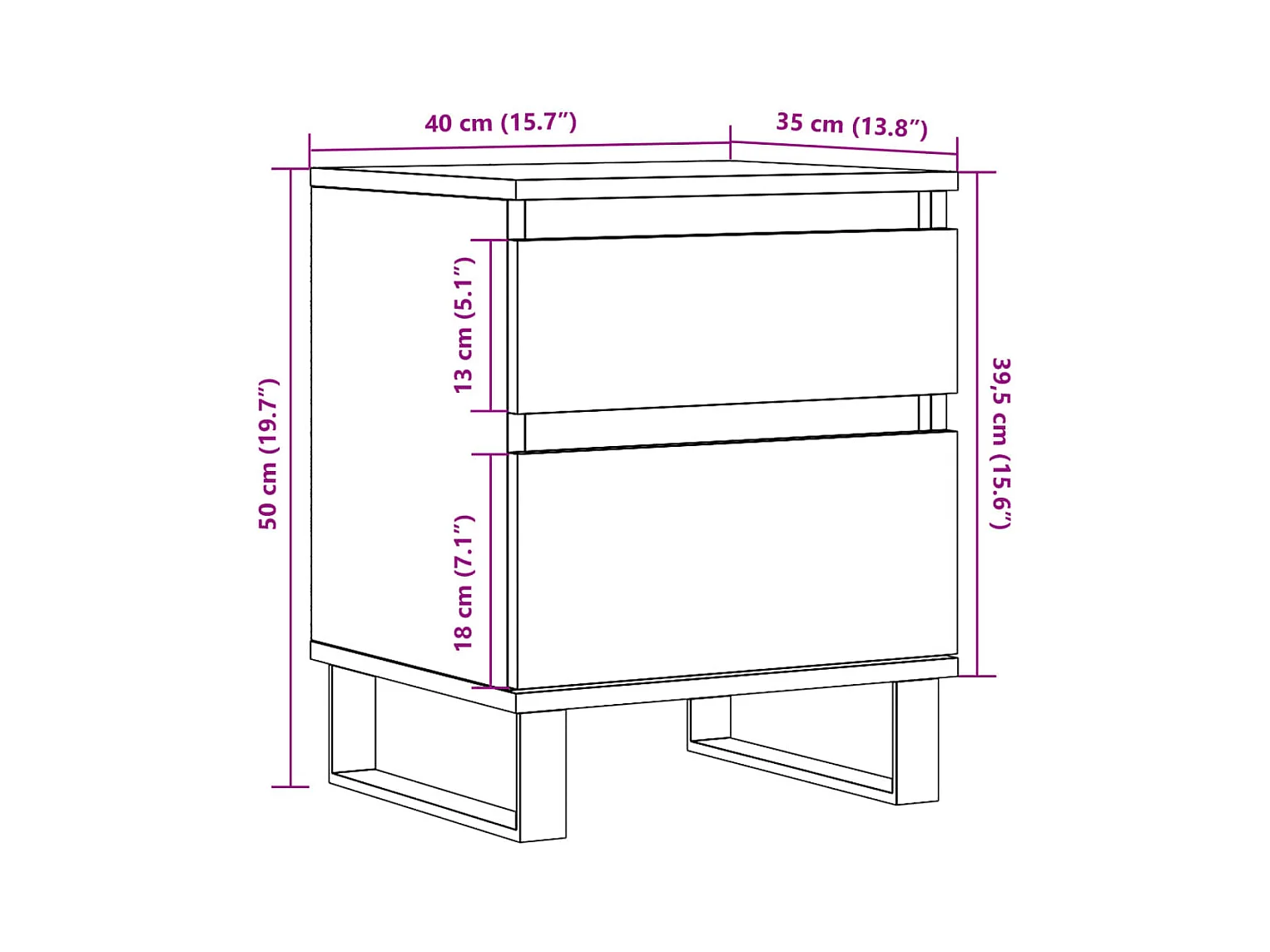 Table de chevet Chêne marron 40x35x50 cm