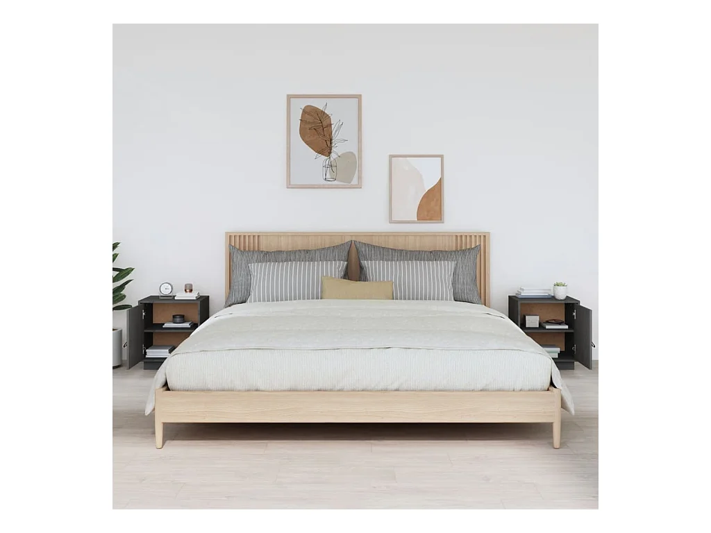 Tables de chevet 2 pièces Gris 40x34x45 cm Bois de pin massif