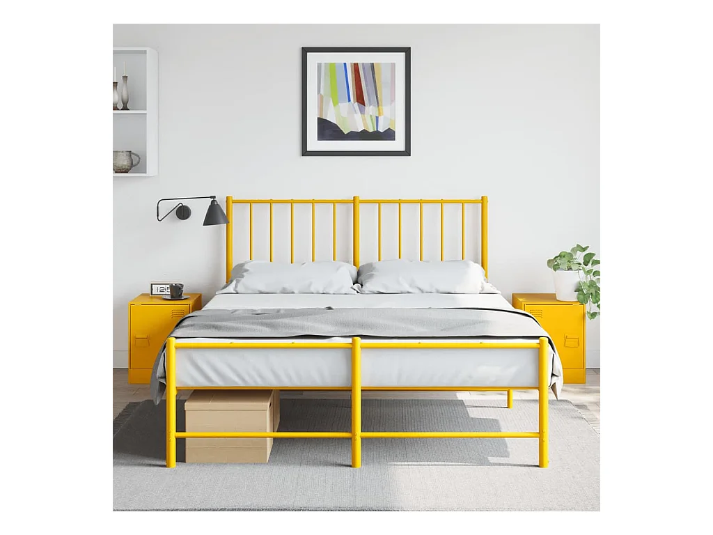 Table de chevet jaune moutarde 34,5x39x62 cm acier