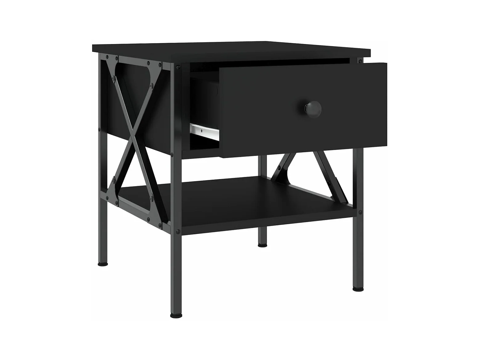 Table de chevet noir 40x30x55,5 cm bois d’ingénierie et fer
