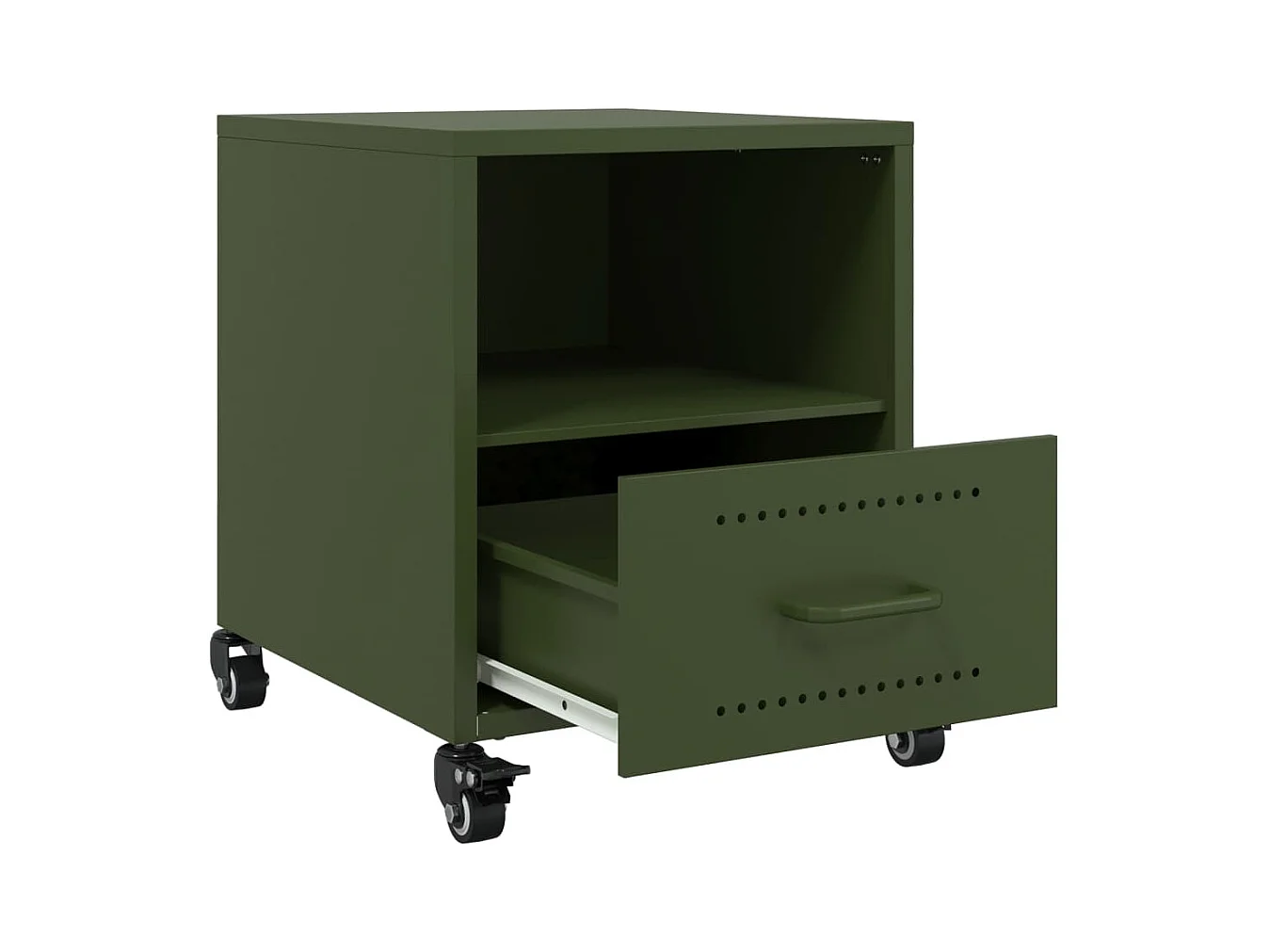 Table de chevet vert olive 36x39x60,5 cm acier laminé à froid