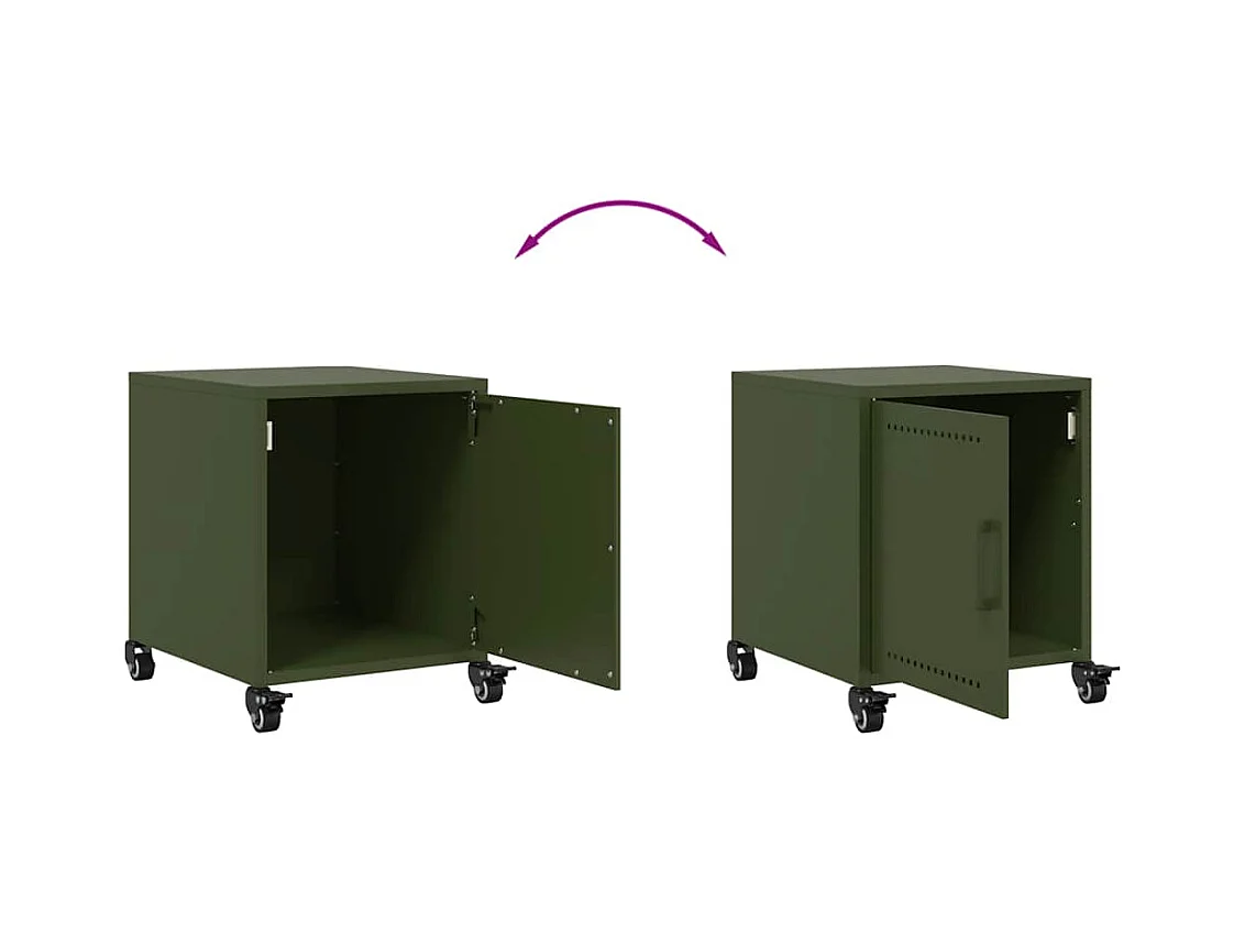 Table de chevet vert olive 36x39x60,5 cm acier laminé à froid