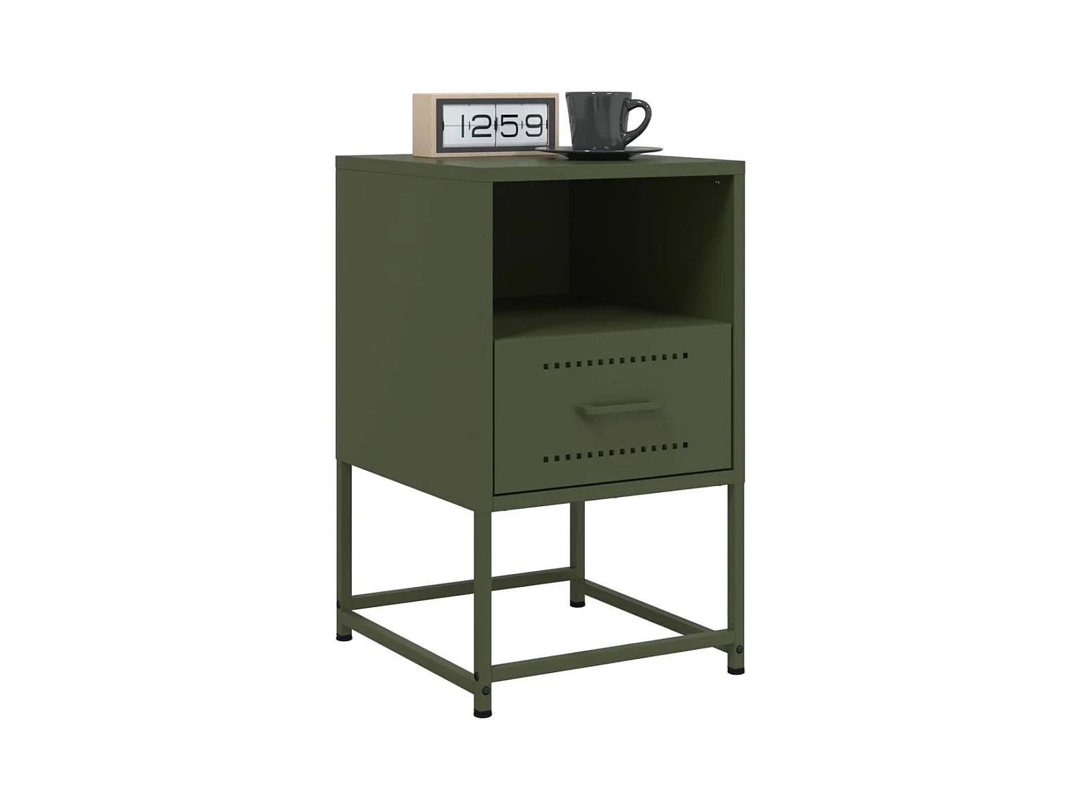 Table de chevet vert olive 36x39x60,5 cm acier laminé à froid