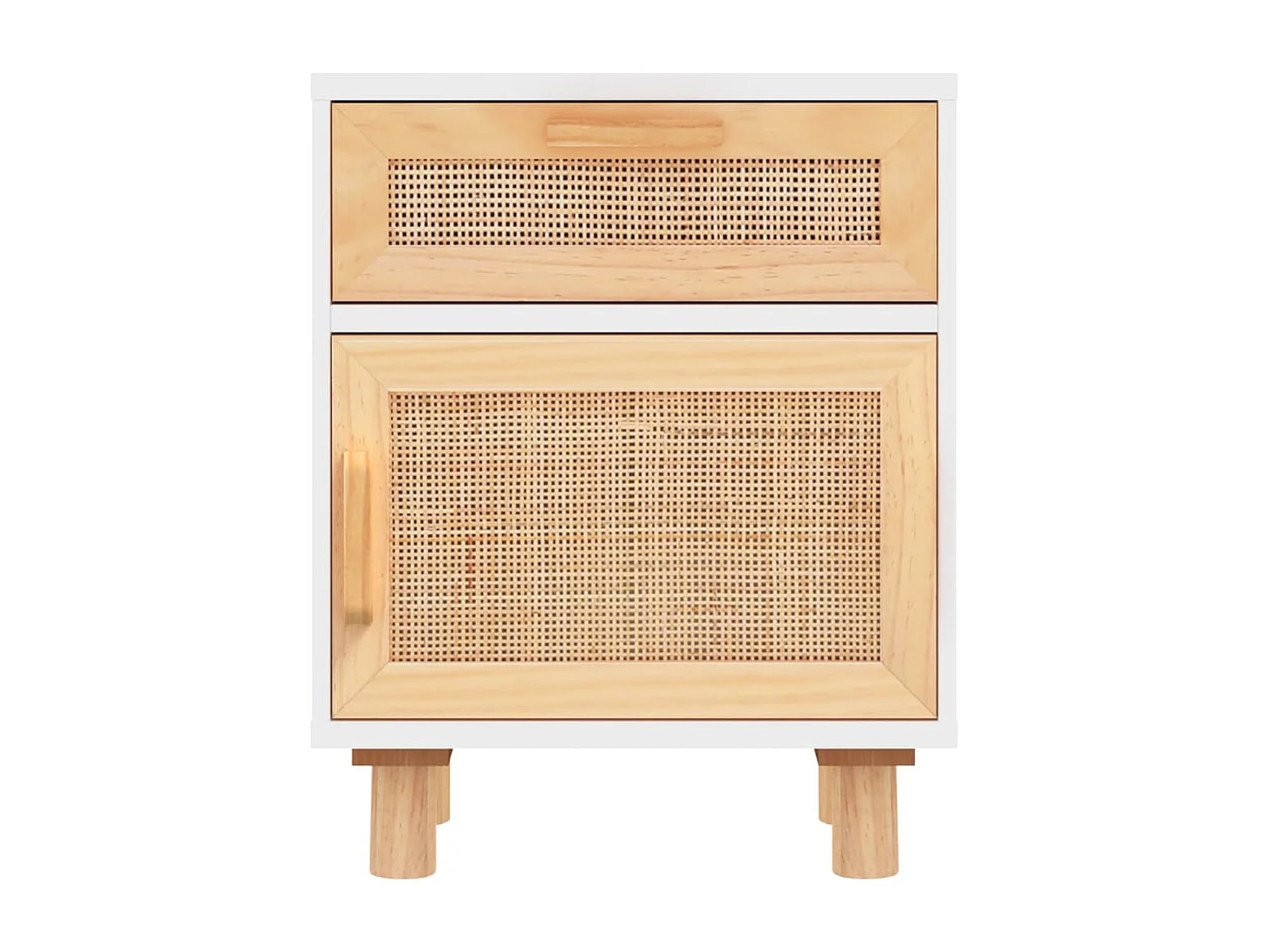 Tables de chevet 2pièces Blanc Bois de pin massif et rotin naturel