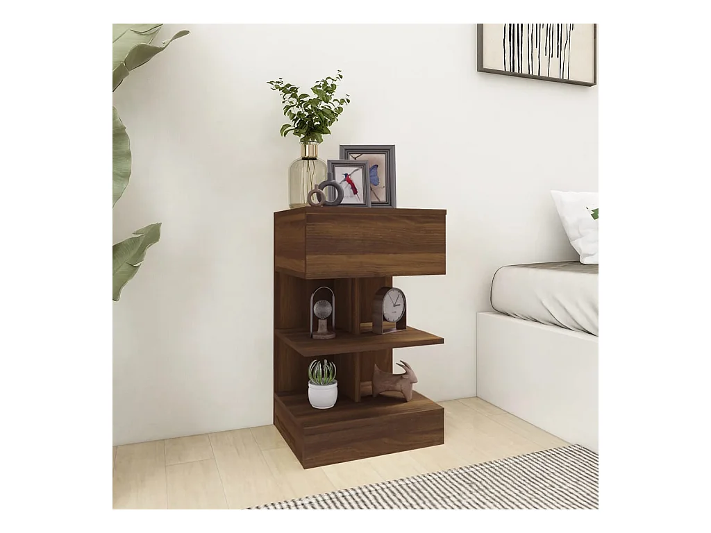 Table de chevet chêne fumé 40x35x47,5 cm bois d’ingénierie