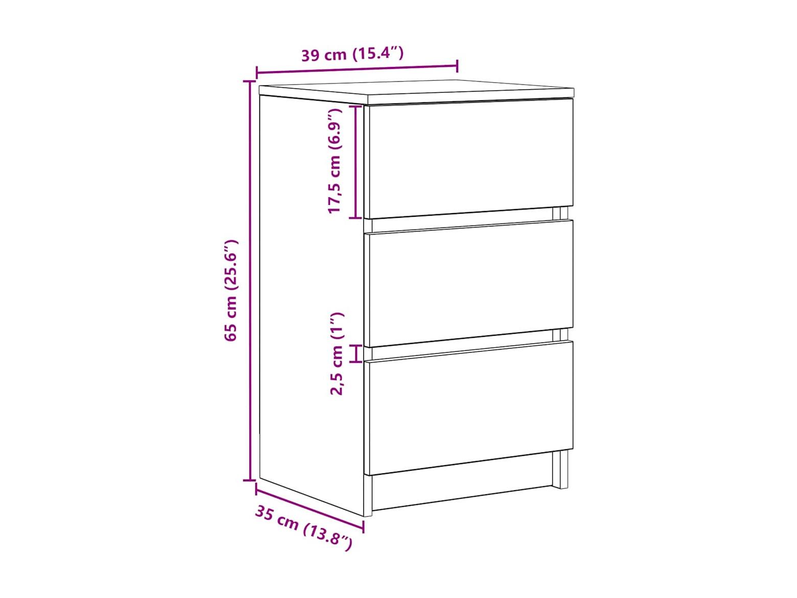 Table de chevet avec 3 tiroirs chêne sonoma 39x35x65 cm