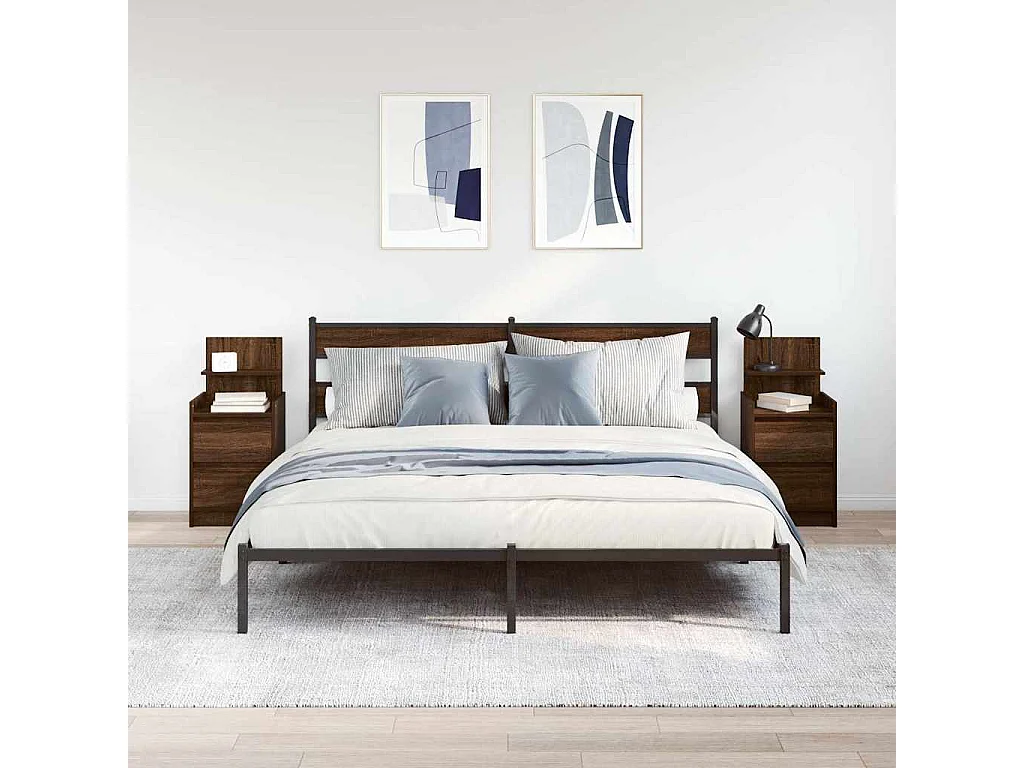 Table de chevet et lumières LED chêne marron bois ingénierie