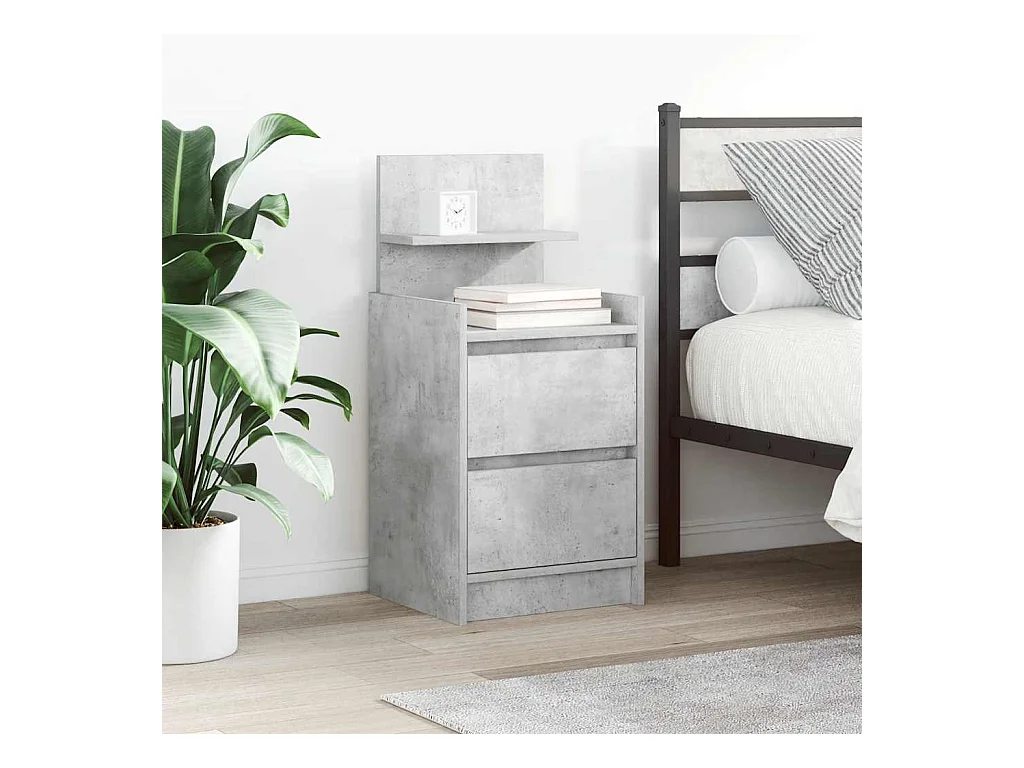 Table de chevet avec 2 tiroirs gris béton 38x34x80 cm