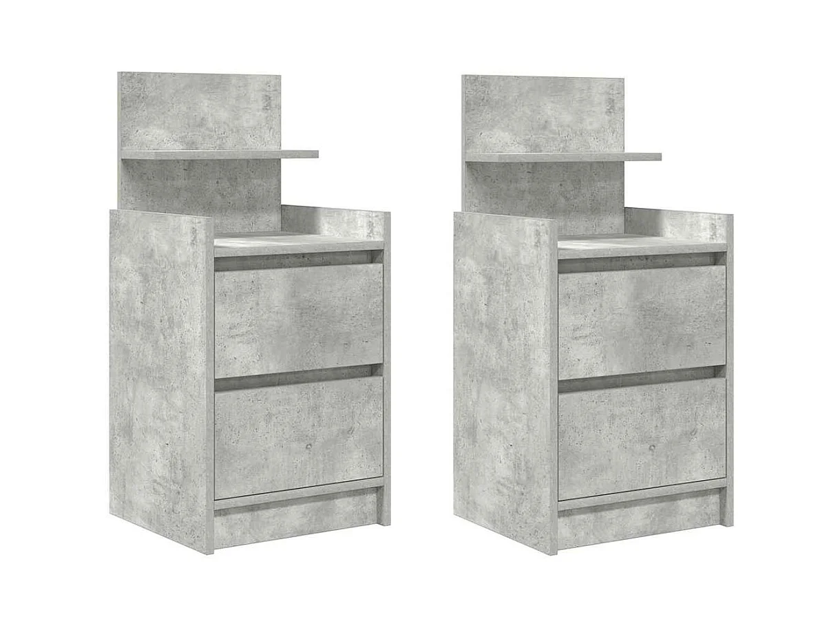 Tables de chevet avec 2 tiroirs 2 pièces gris béton 38x34x80 cm