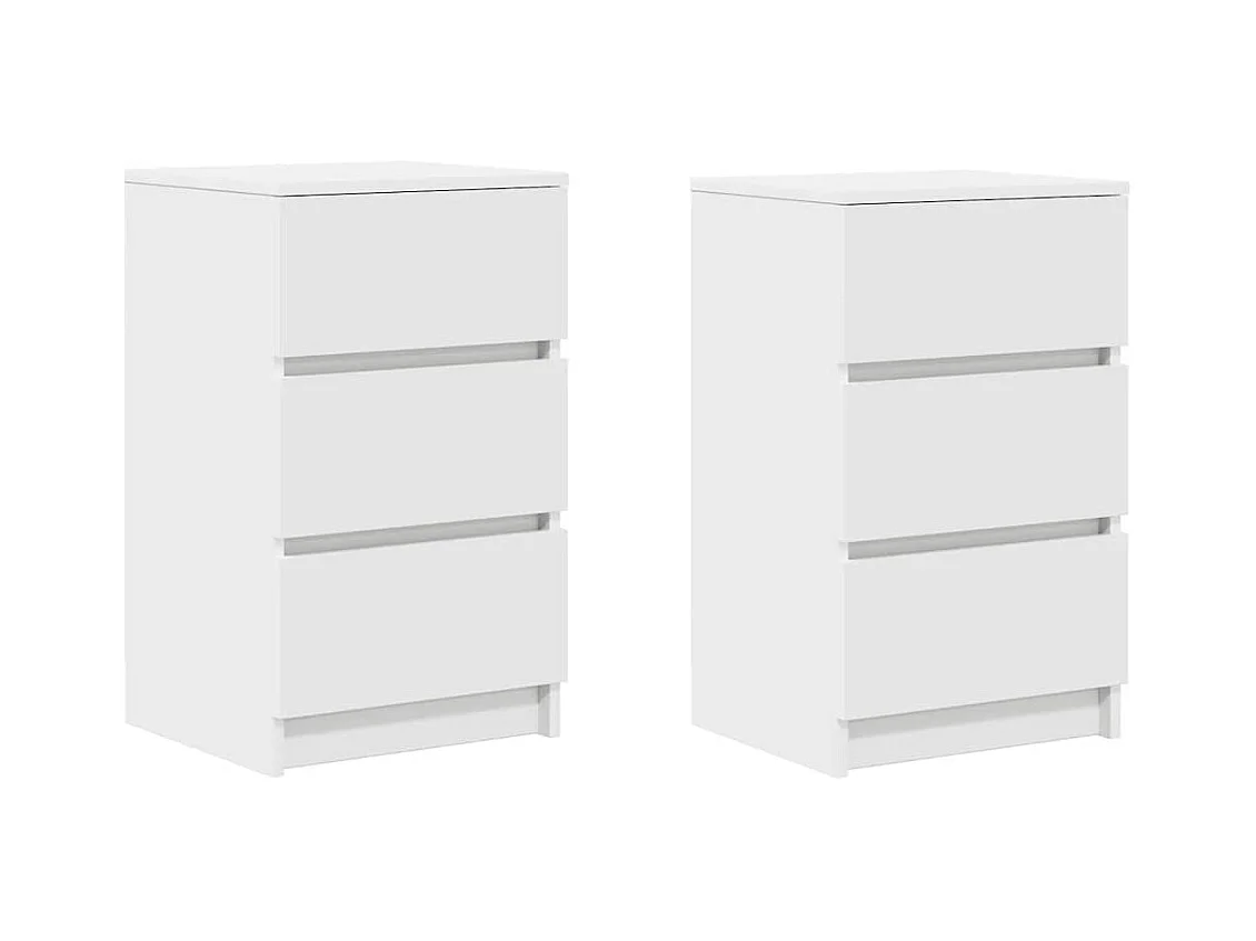 Tables de chevet avec 3 tiroirs 2 pièces blanc 39x35x65 cm