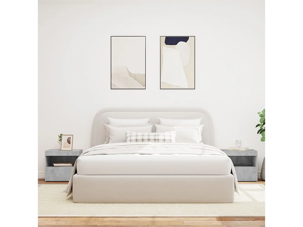 Lot de 2 Tables de chevet murales avec lumières LED gris béton GHR12071