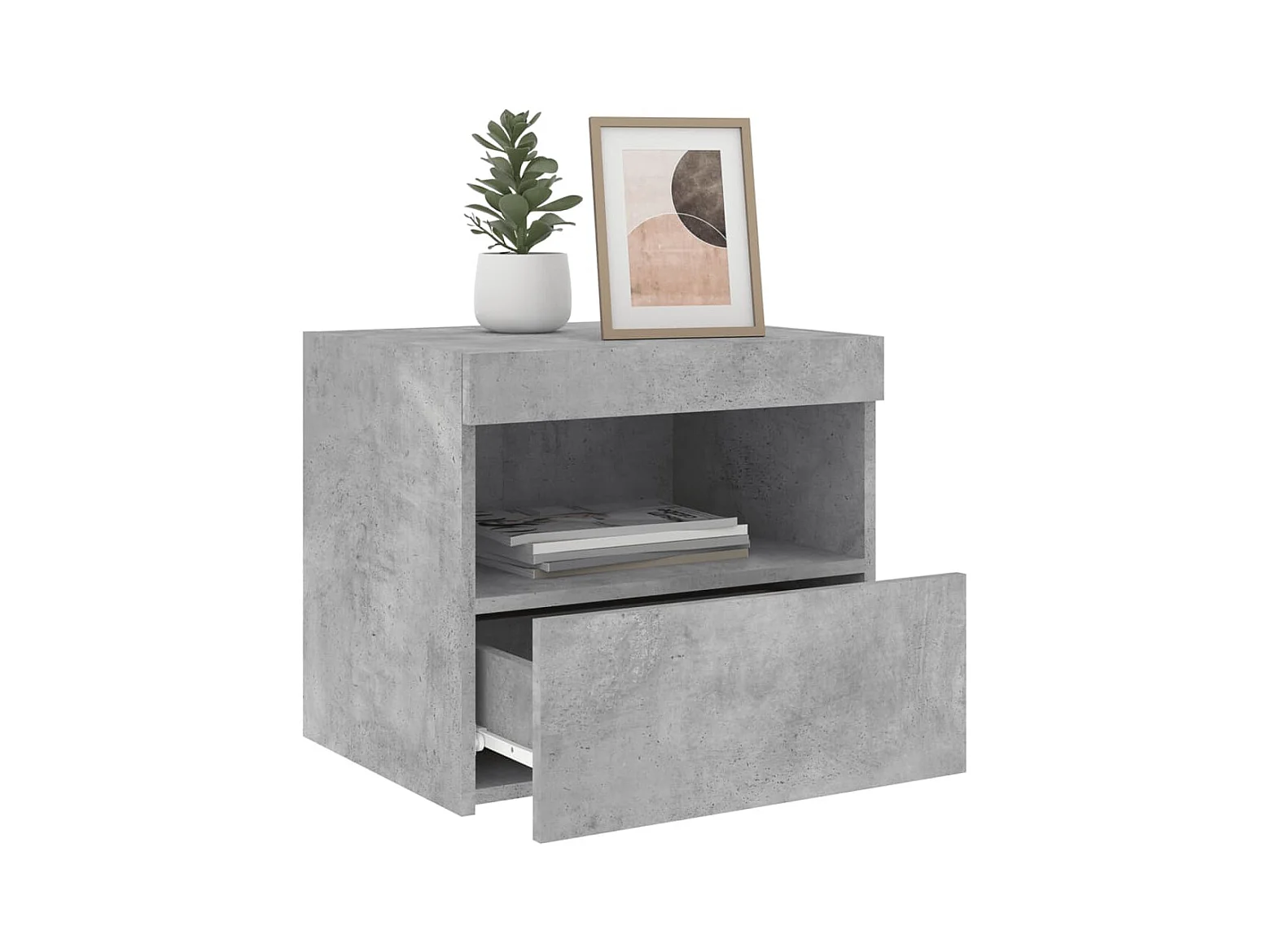 Table de chevet murale avec lumières LED gris béton KEFWE40626