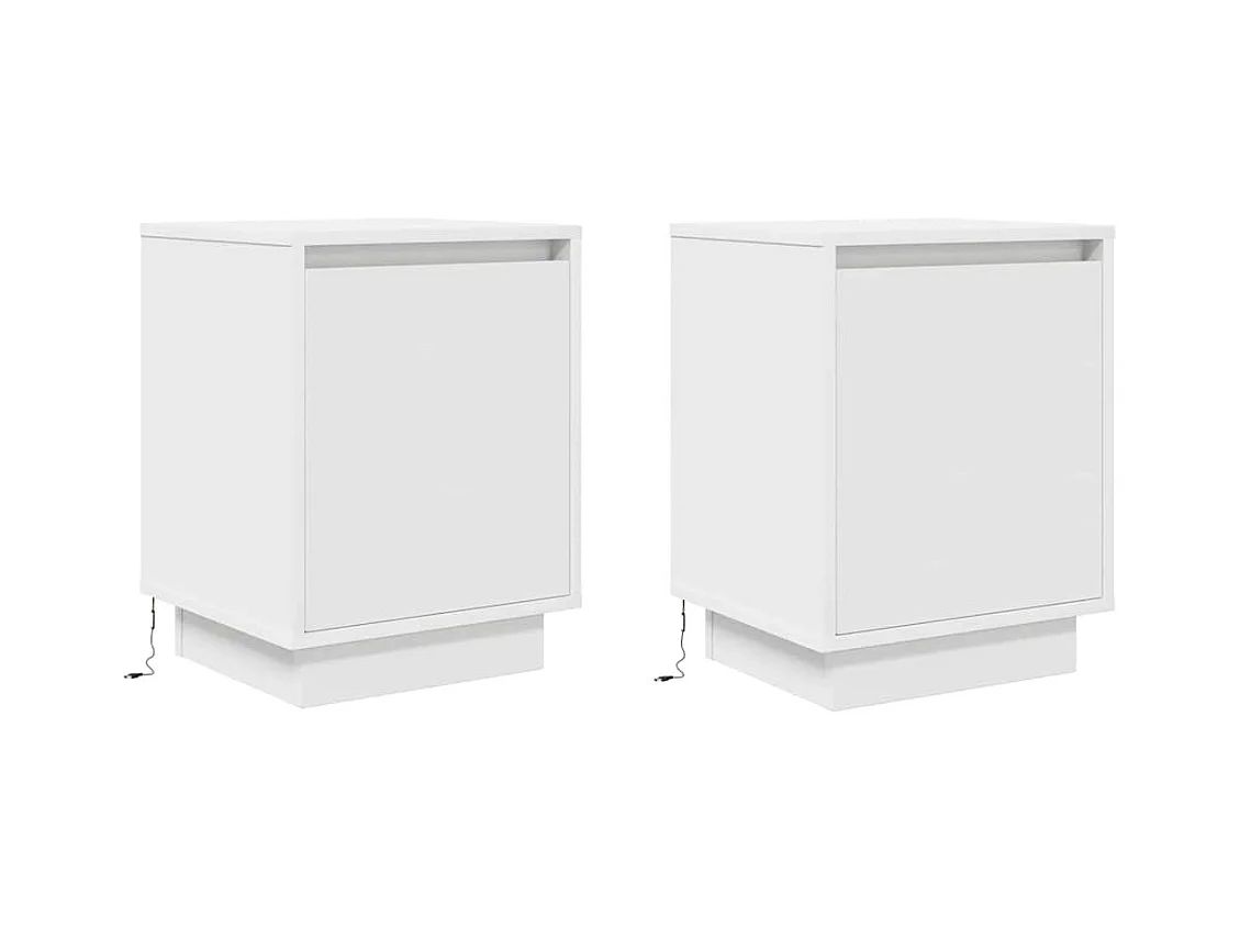 Tables de chevet et lumières LED 2pièces blanc bois d'ingénierie