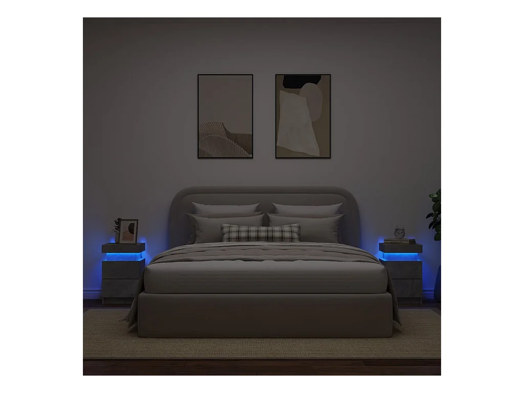 Tables de chevet avec lumières LED 2 pièces gris béton 35x39x55 cm