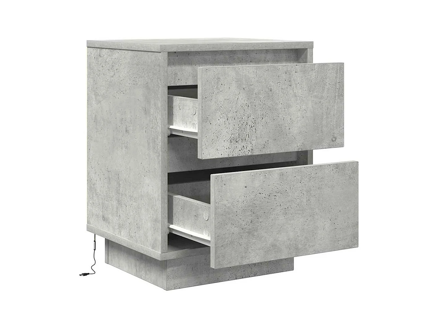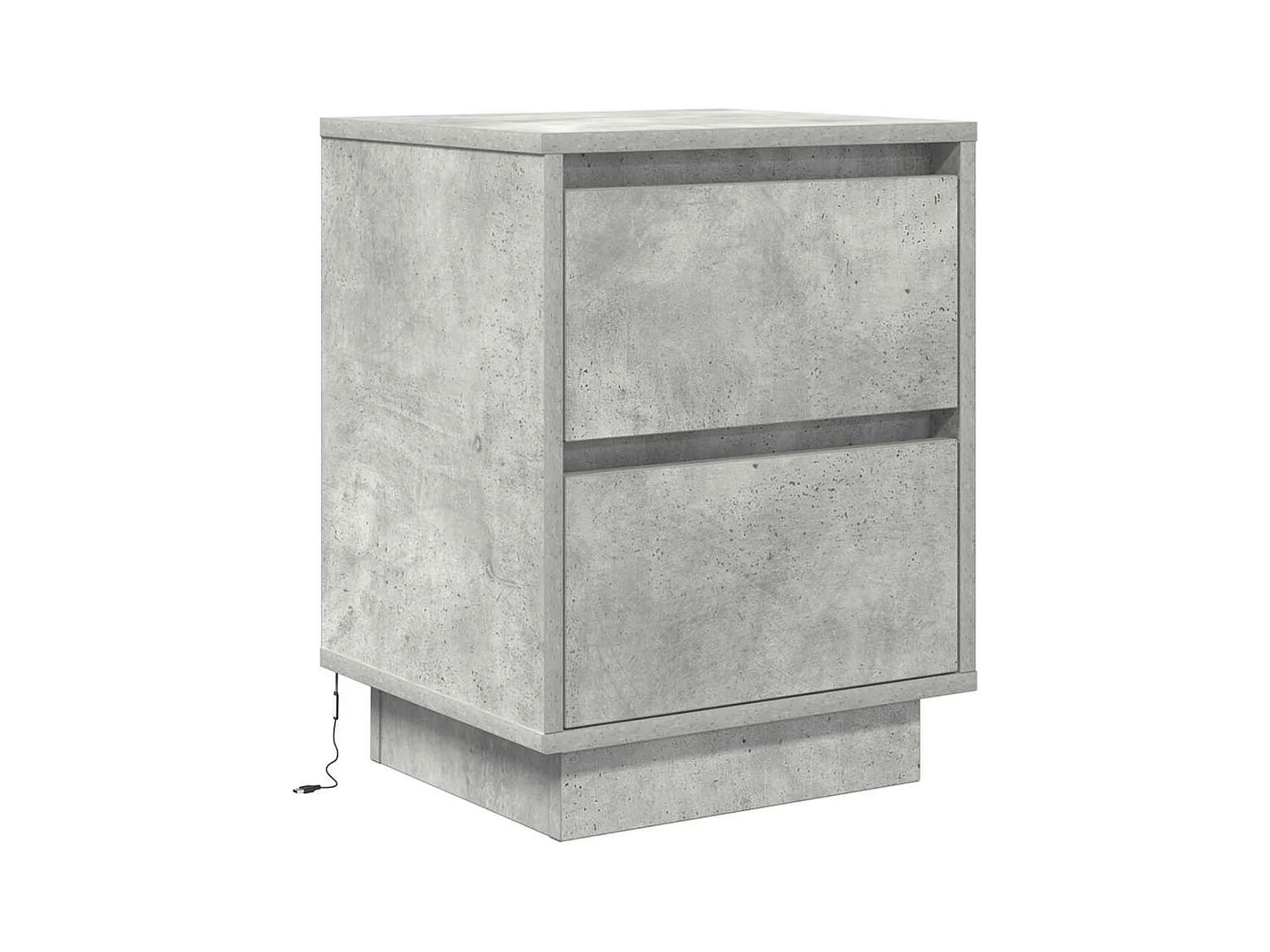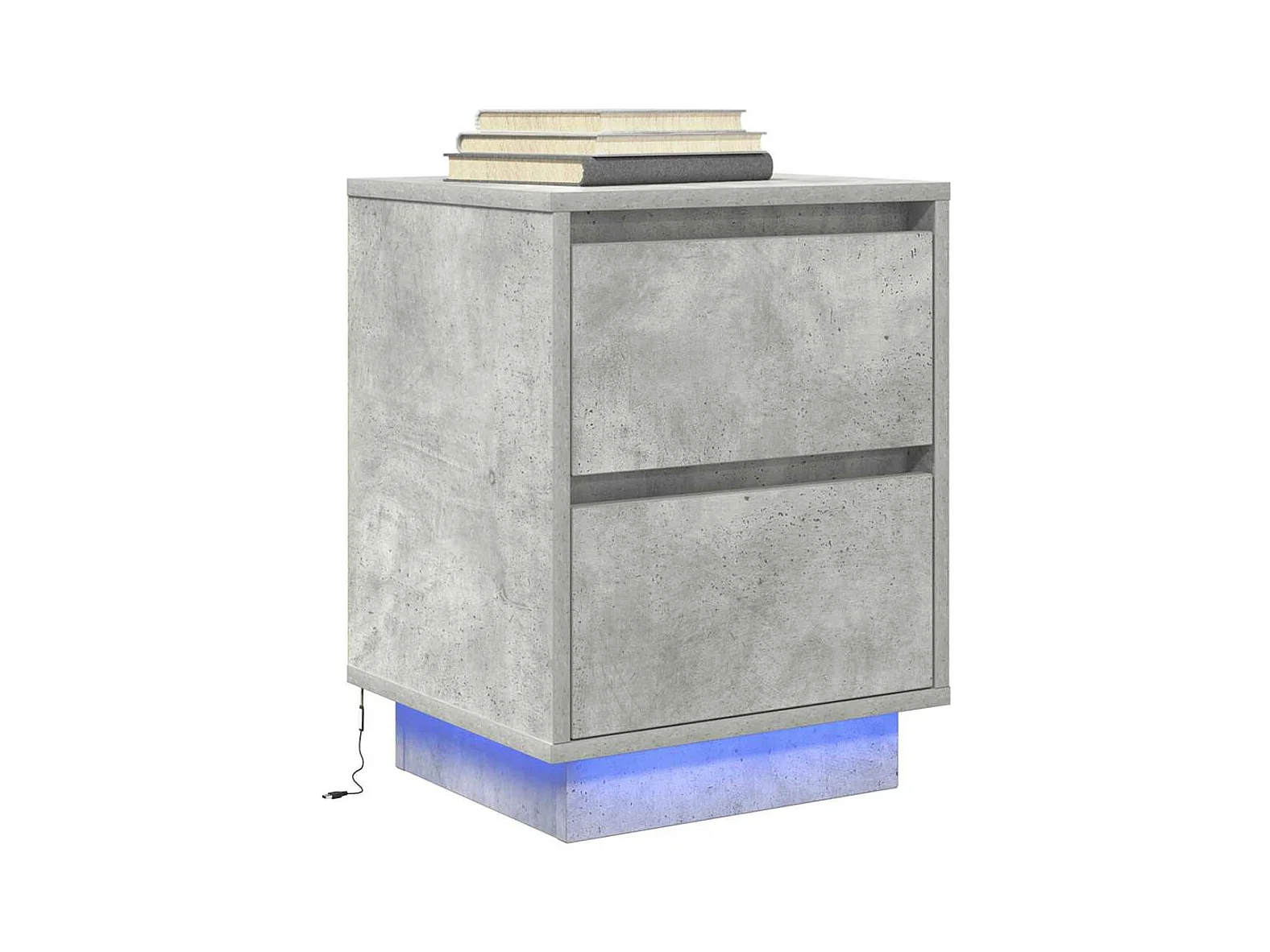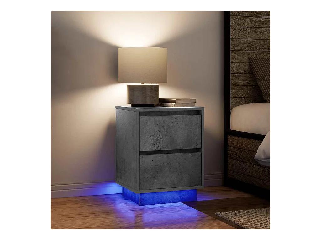 Table de chevet et lumières LED gris béton bois d'ingénierie