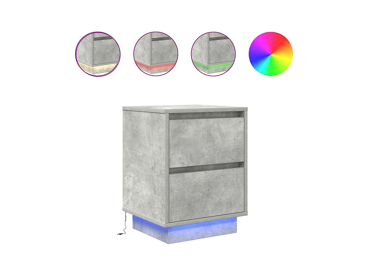 Table de chevet avec lumières LED gris béton 38x34x50 cm
