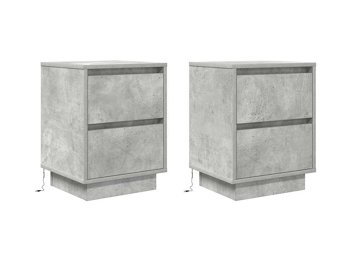 Tables de chevet avec lumières LED 2 pièces gris béton 38x34x50 cm