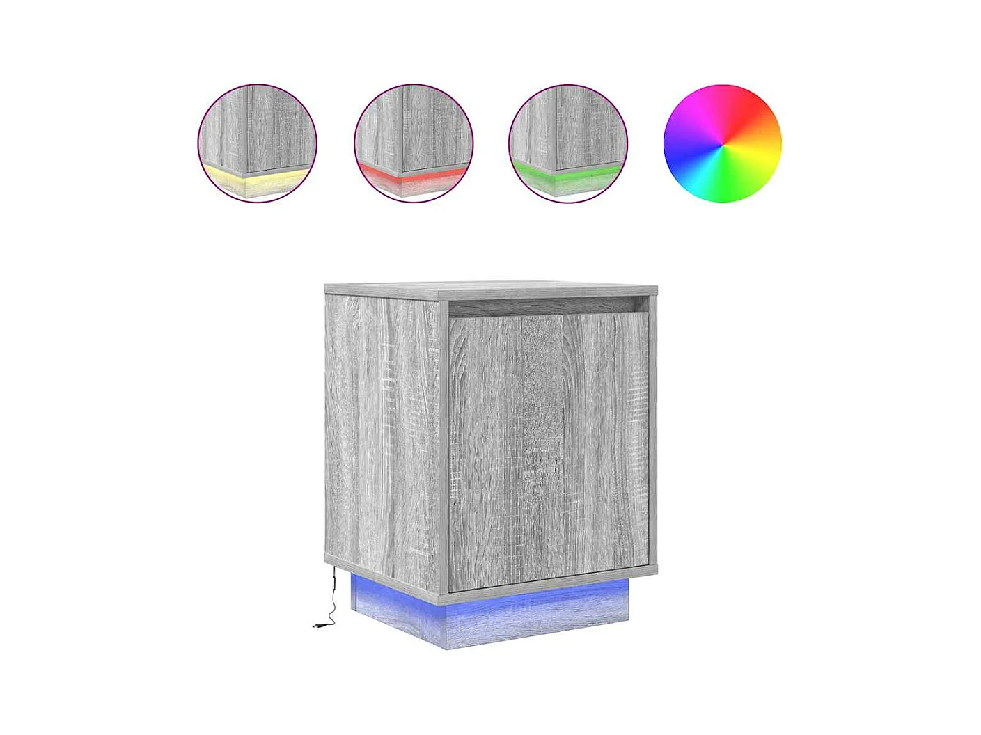 Table de chevet avec lumières LED sonoma gris 38x34x50 cm